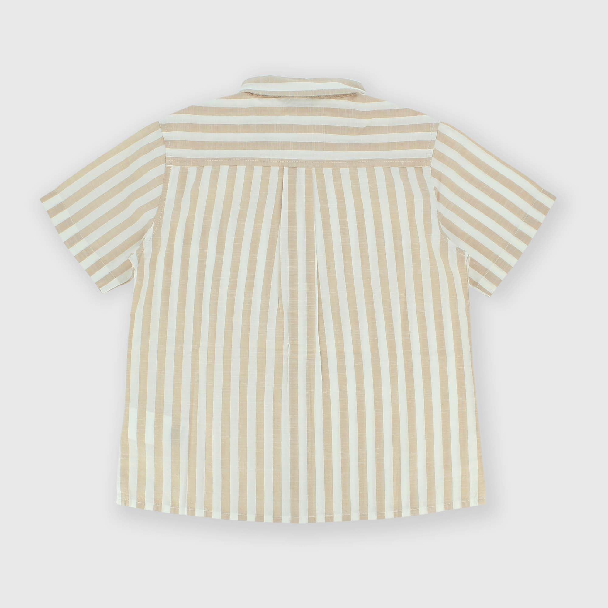 Cotton shirt with yarn-dyed stripes, with short sleeves. Front button closure.