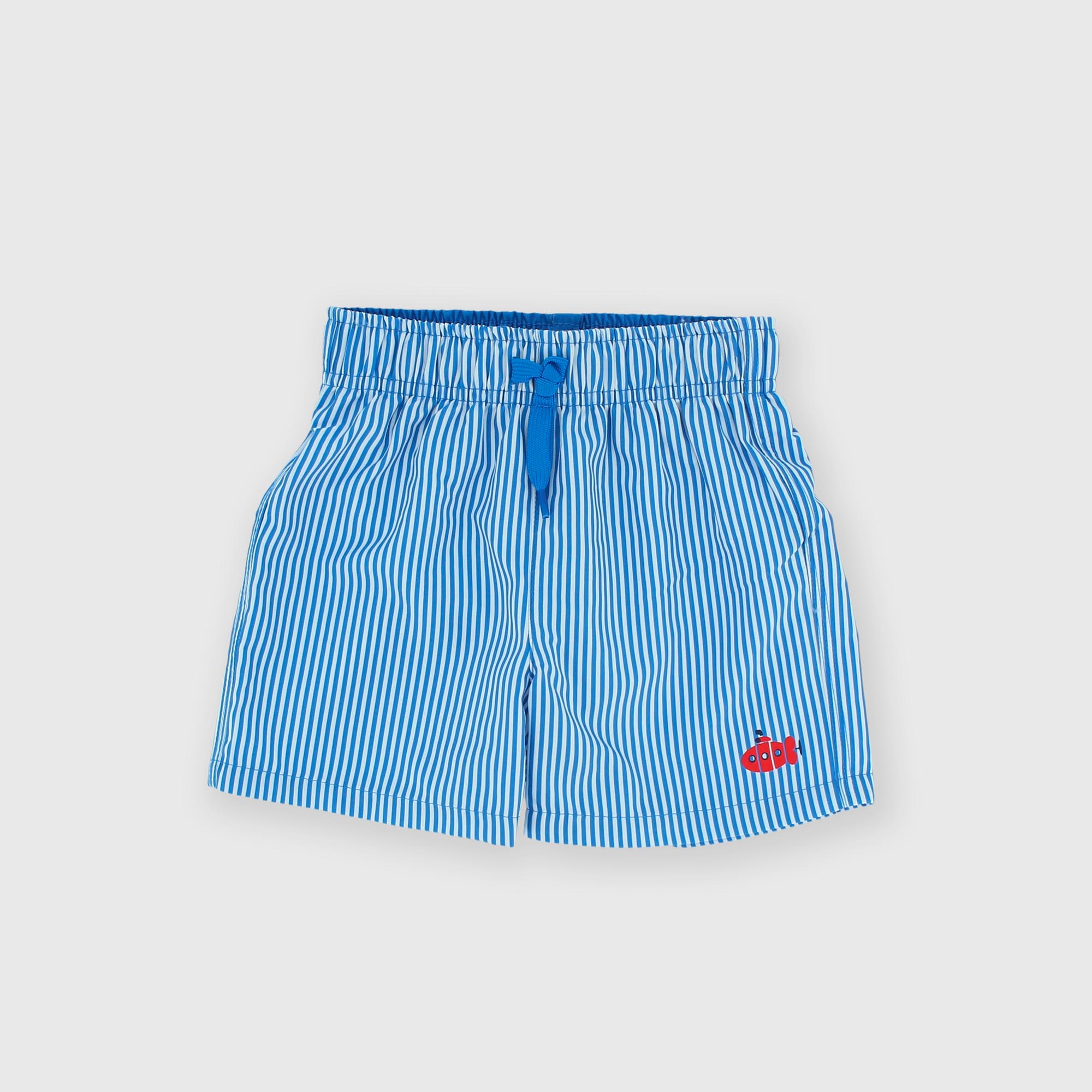 Striped swim shorts with elasticated waistband and front laces. Micro-mesh inner panties.