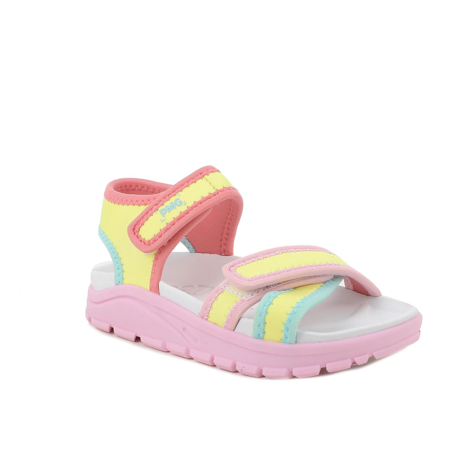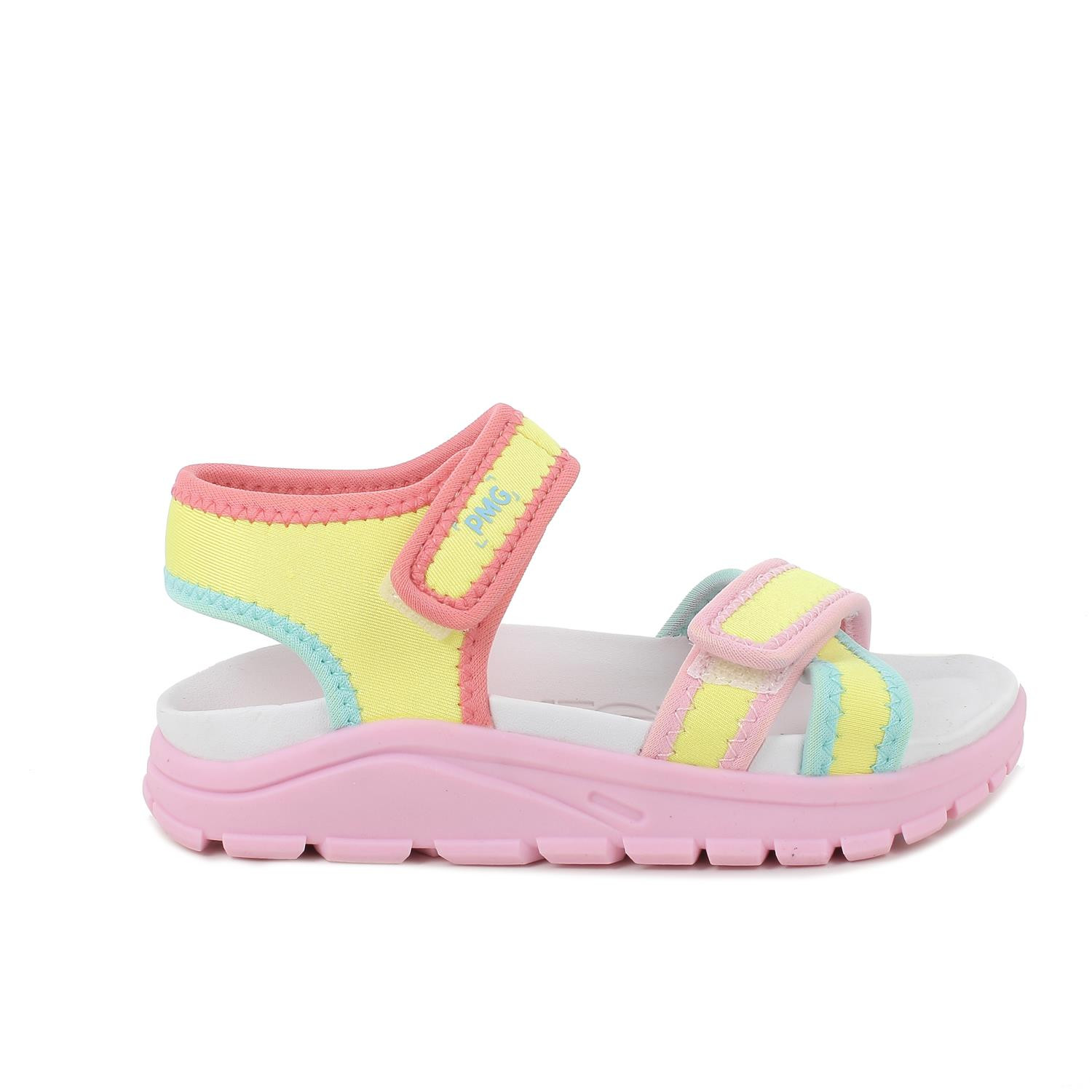 These children's sandals feature a cheerful and comfortable design, perfect for summer days. The structure of the sandal is designed to offer stable and secure support, with a sturdy and contoured sole for good grip on various surfaces. The closure is adjustable with velcro bands both on the ankle and on the front, allowing a personalized and practical fit. The interior is padded to ensure comfort, while the EVA footbed is anatomical to support the foot during movement and outdoor activities.
