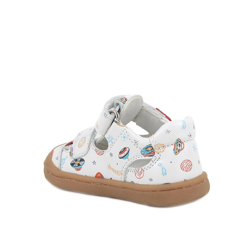 First step sandals closed on the toe and open on the sides, ideal for protecting the foot while ensuring good ventilation. They feature a velcro closure on the top and an additional front adjustment system, ensuring a stable and comfortable fit. The leather lining and insole offer a soft and breathable surface. The sole is robust and flexible, designed to ensure excellent grip and stability.
