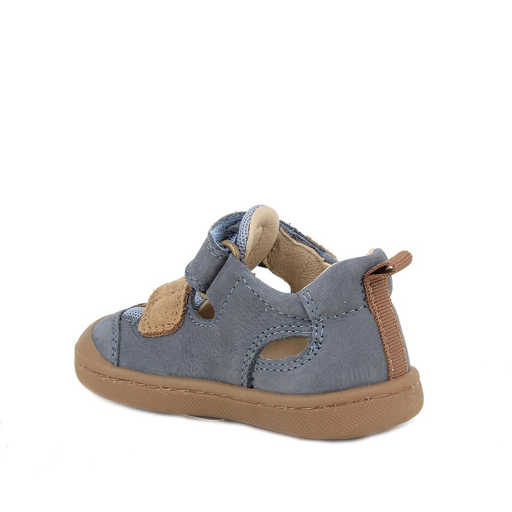 First step sandals closed on the toe and open on the sides, ideal for protecting the foot while ensuring good ventilation. They feature a velcro closure on the top and an additional front adjustment system, ensuring a stable and comfortable fit. The leather lining and insole offer a soft and breathable surface. The sole is robust and flexible, designed to ensure excellent grip and stability.