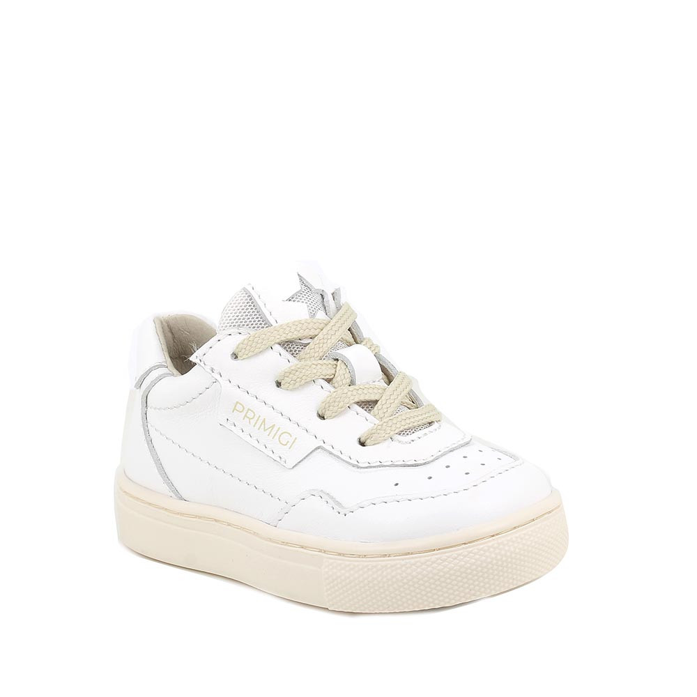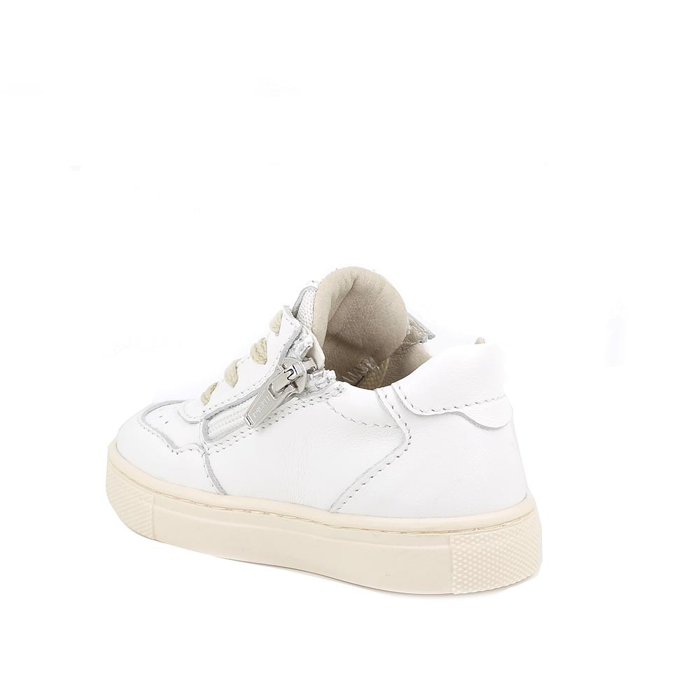 These first steps sneakers have a contemporary, urban style. They feature traditional laces, but also a practical internal zip. The leather lining offers a soft and breathable feel, ideal for keeping your feet fresh and comfortable throughout the day. The flat and durable sole ensures good grip and stability, making them perfect for everyday activities.