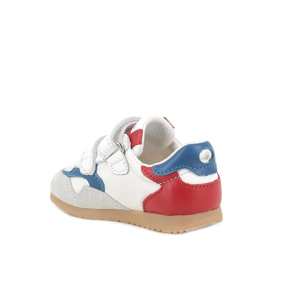 A model that combines character and craftsmanship, designed for little explorers with a bold taste. The dynamic design, inspired by the most iconic sneakers, creates a modern and timeless look. Made with carefully selected high-quality materials, soft to the touch but durable, these sneakers with double velcro straps offer comfort and long-lasting wear. The snug structure naturally supports the foot, accompanying every movement with confidence and style. Ideal for well-put-together casual outfits.