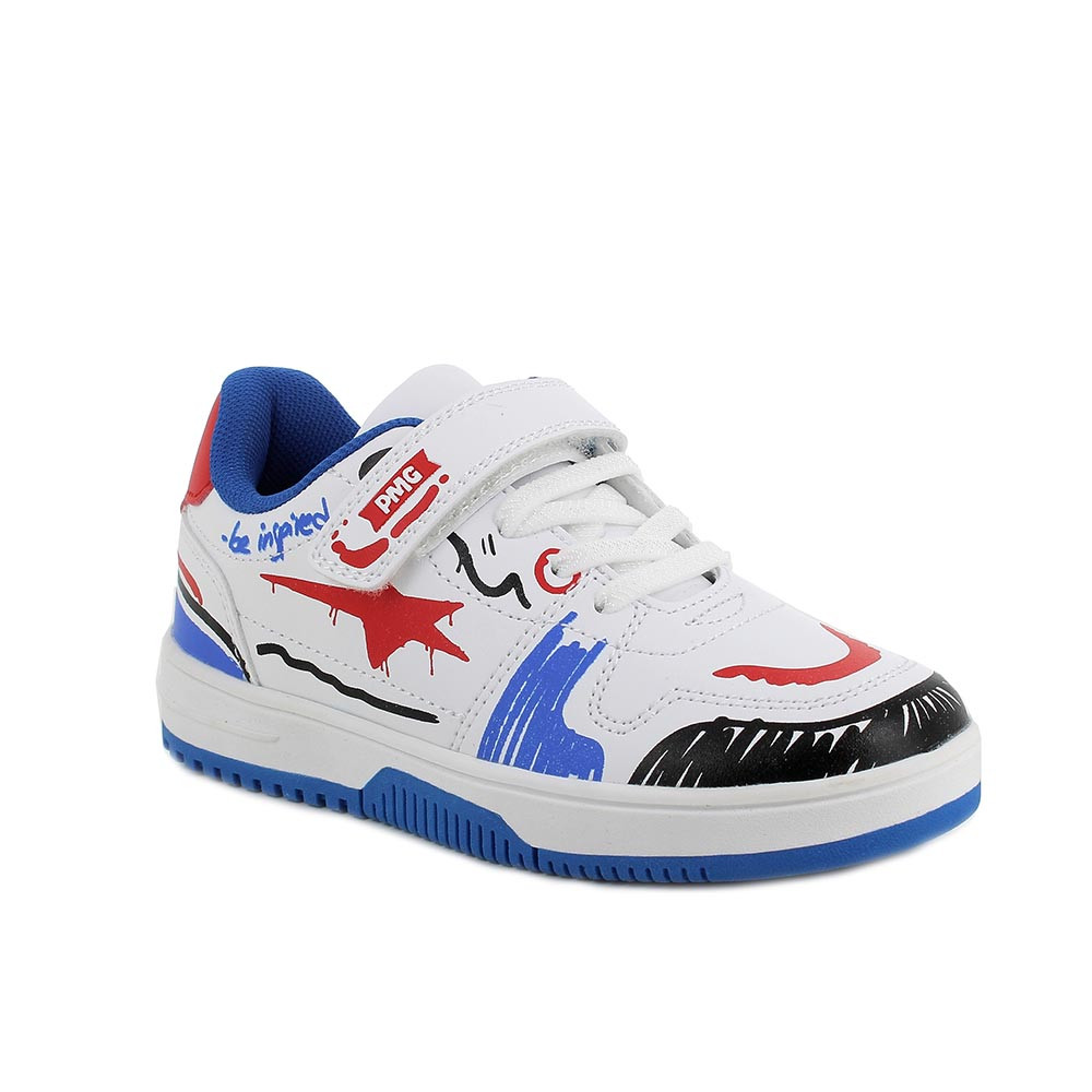 SNEAKERS FOR BOY WHITE AND BLUE WITH VELCRO