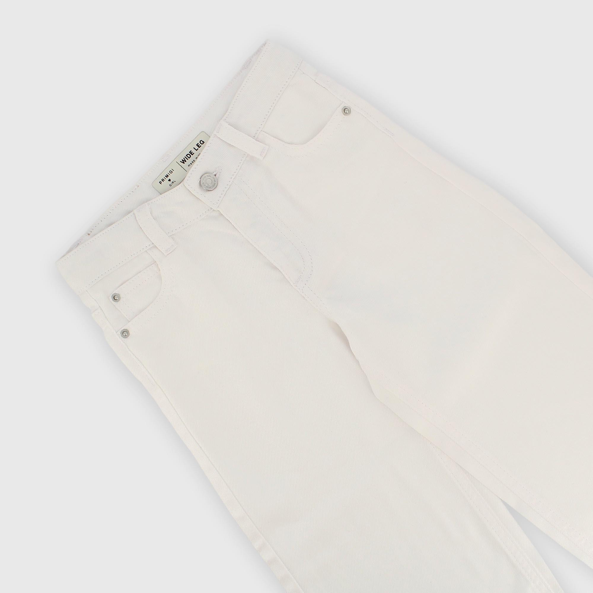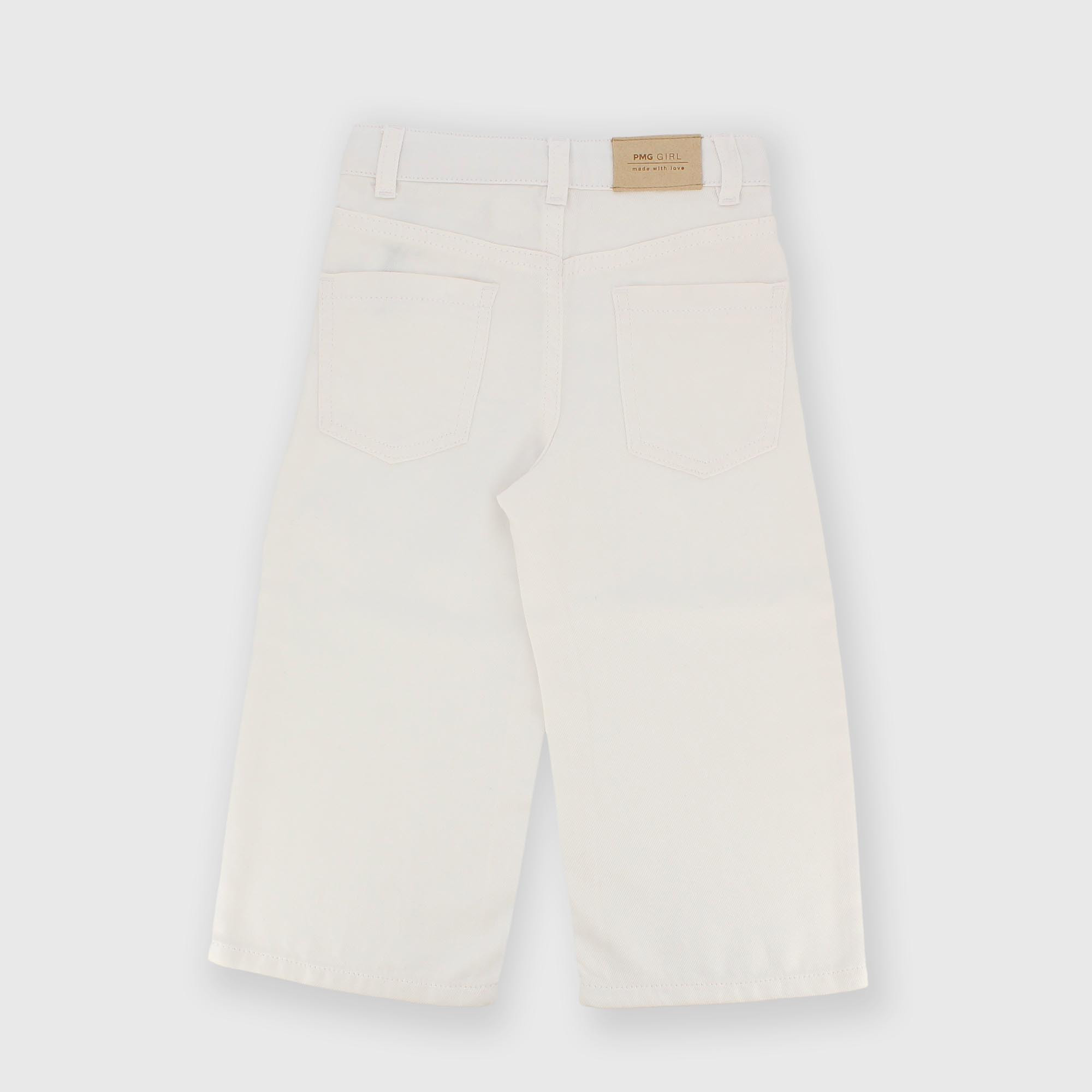 Wide-leg pants in lightweight fabric with an adjustable elastic inside. Button and zip closure. Five pockets.