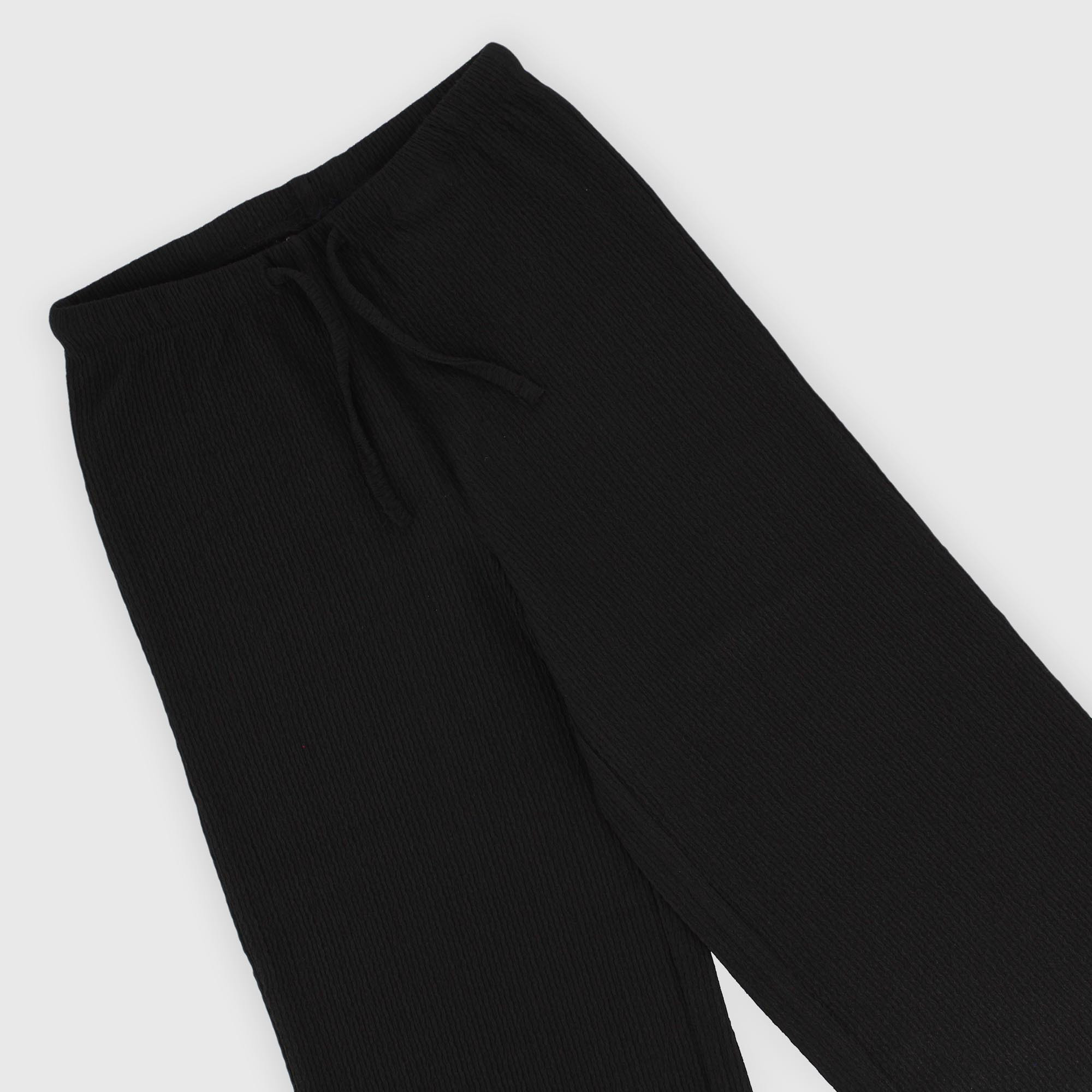 Wide-leg seersucker pants with an elastic waistband and front drawstrings.