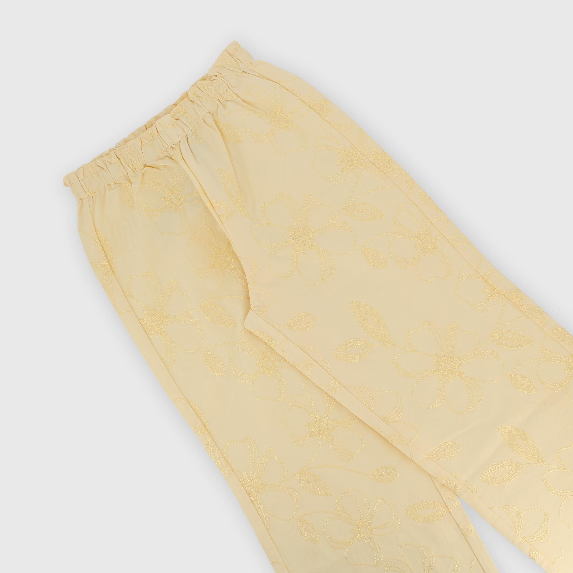 Wide-leg cotton pants with embroidery. Elastic waistband.