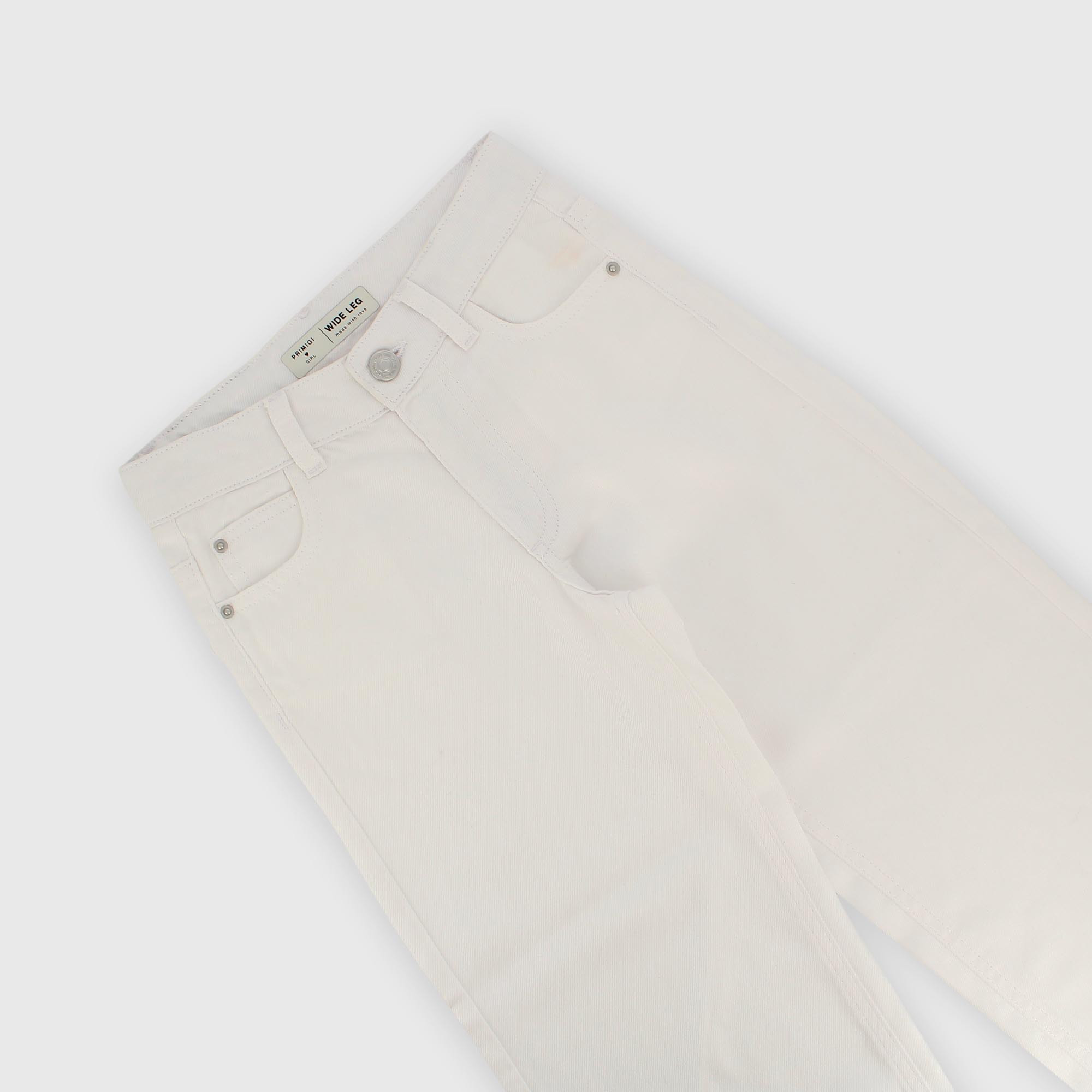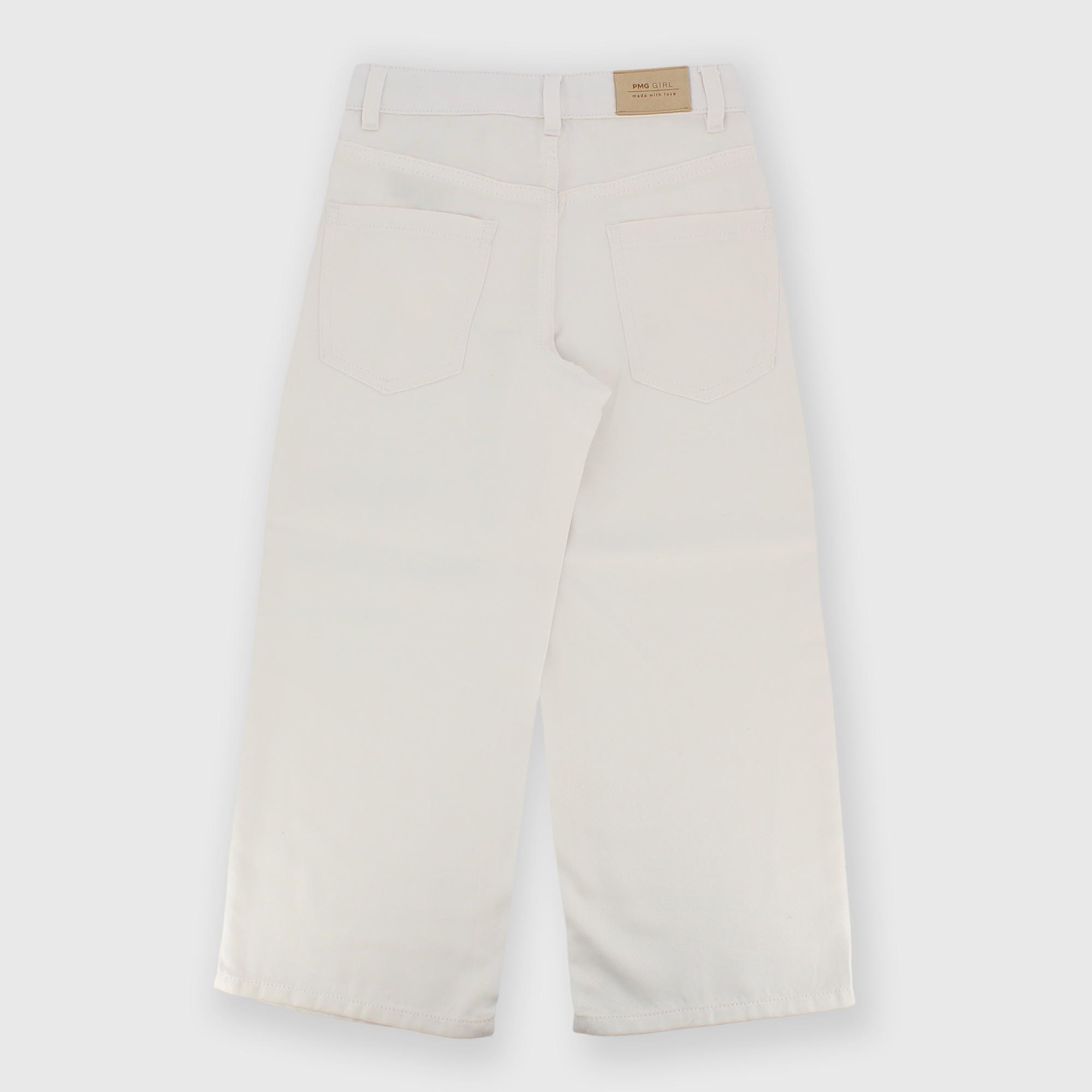 Wide-leg pants in lightweight fabric with an adjustable elastic inside. Button and zip closure. Five pockets.