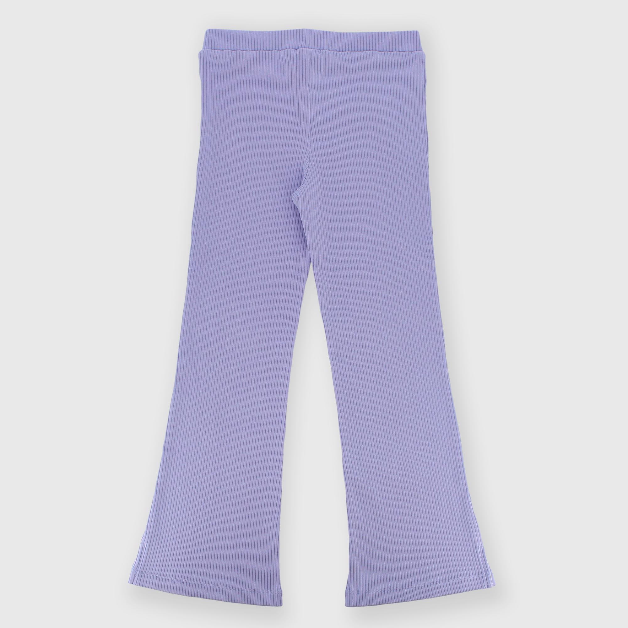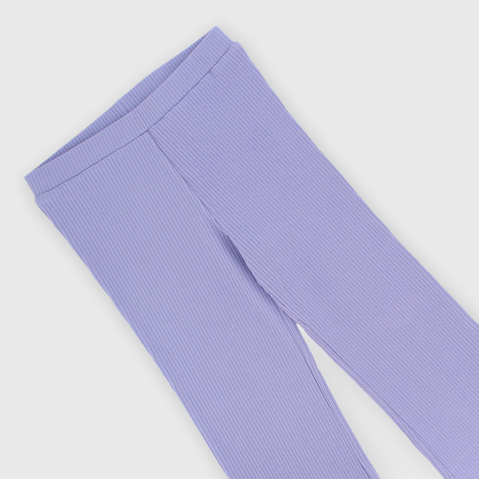 Ribbed bell-bottom leggings with an elastic waistband. Side slits at the hem.