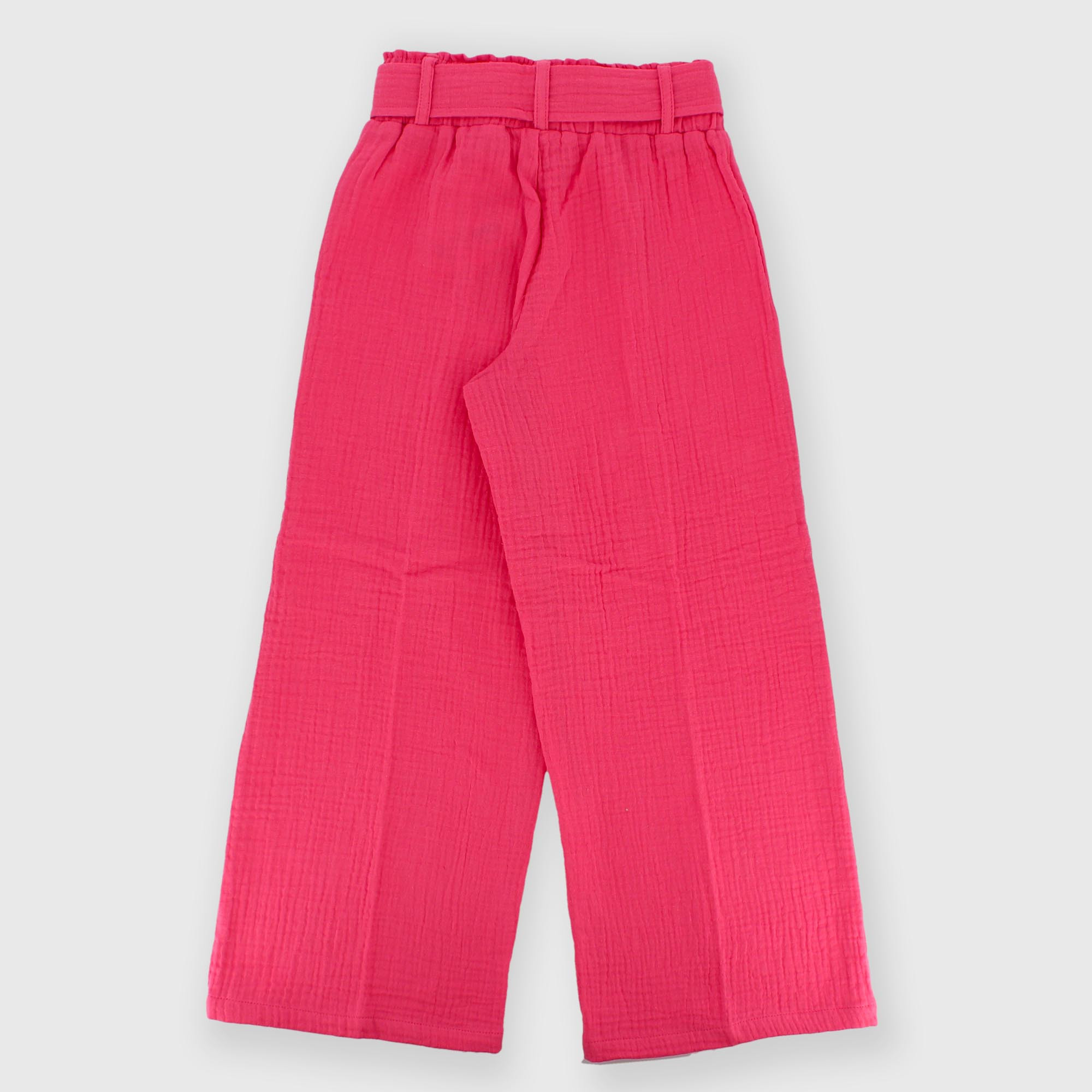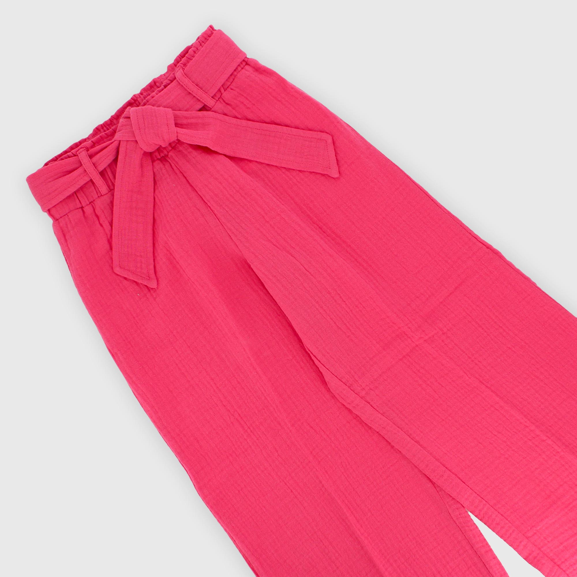 Wide-leg cotton gauze pants with elastic waistband and belt loops. Matching belt.