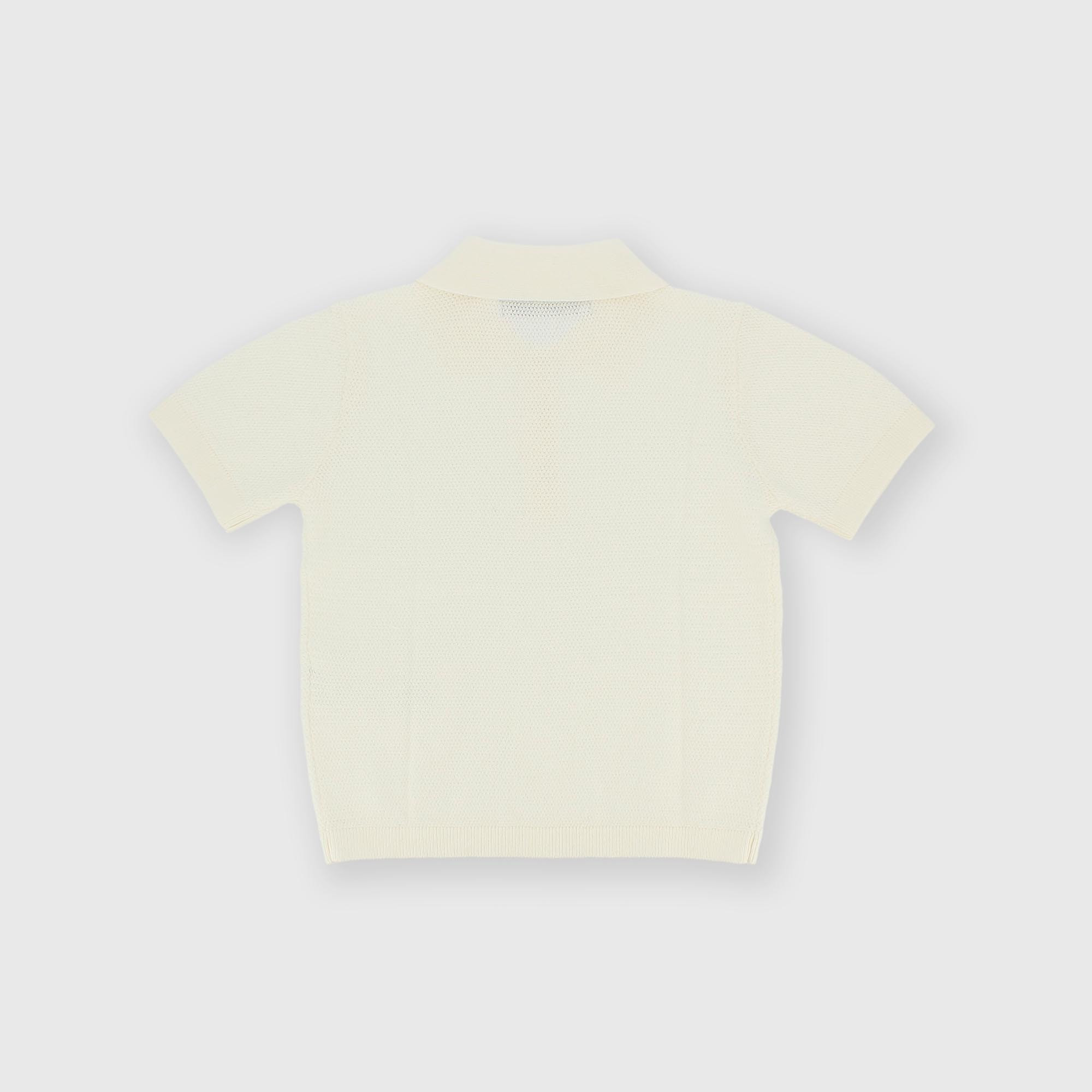 Knit polo in soft cotton with short sleeves. Front button closure.