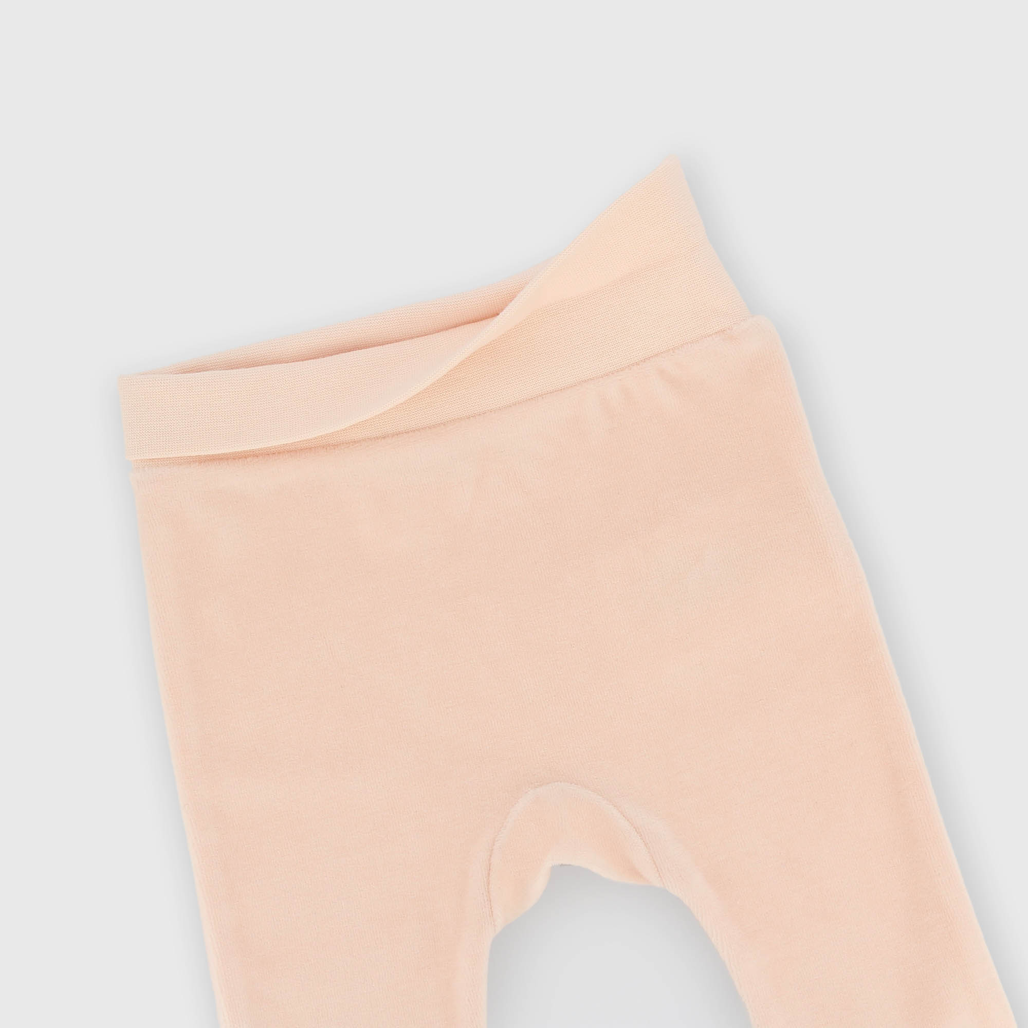 Chenille leggings with elasticated waist with turn-up and feet. Solid color.