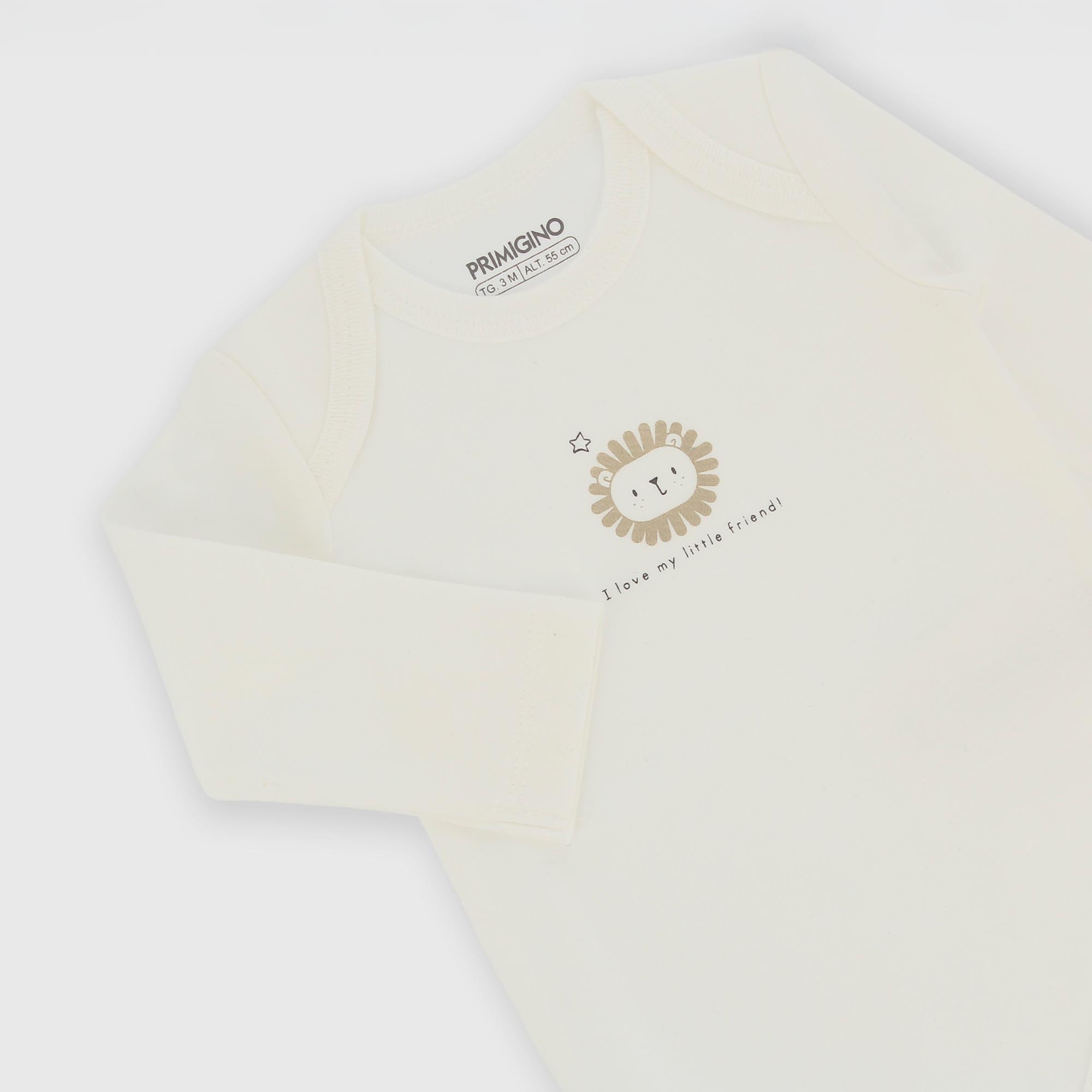 Body in warm coton with a round neck and long sleeves. Snap button closure at the bottom. Lion print on the front.
