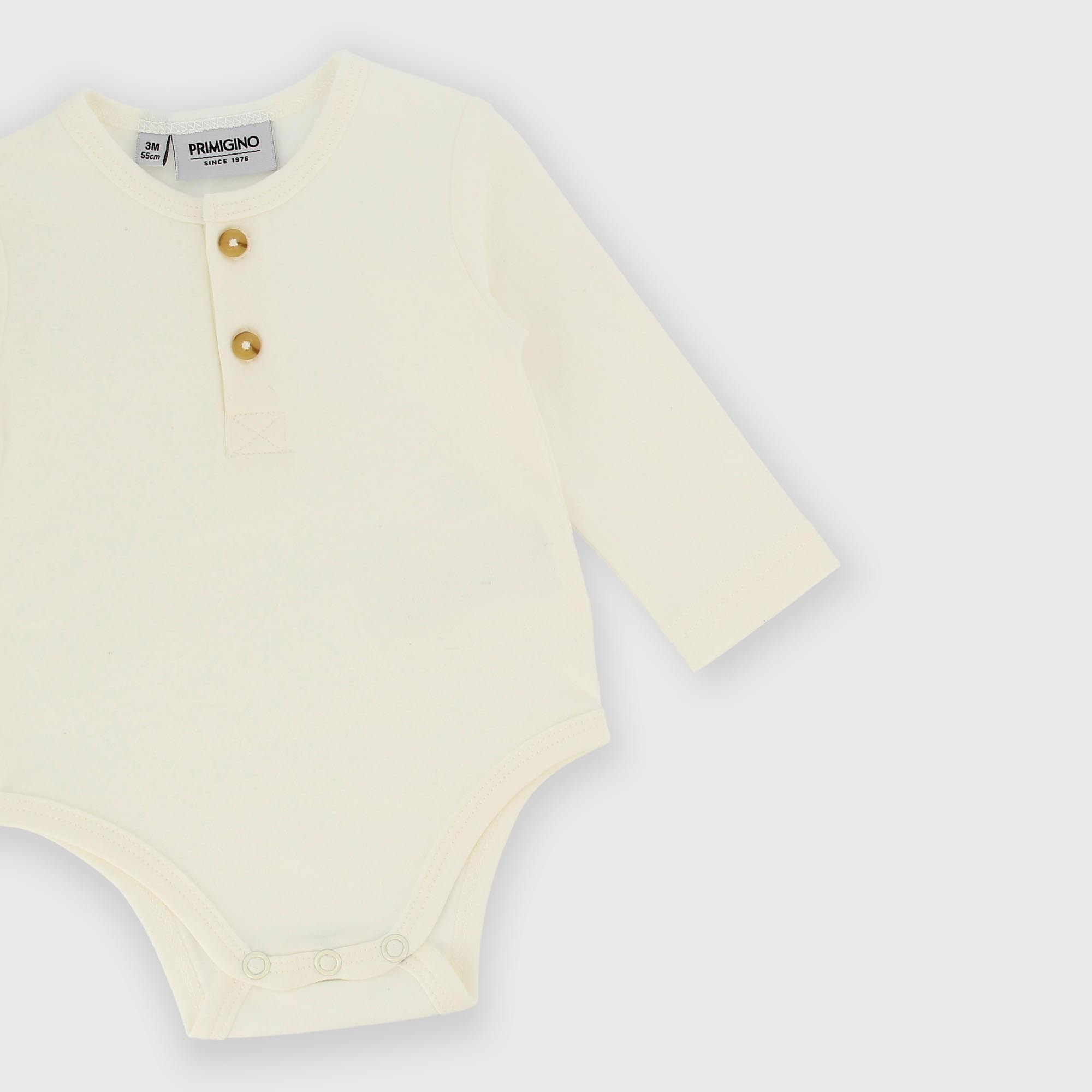 Cotton interlock long-sleeved bodysuit for boy white