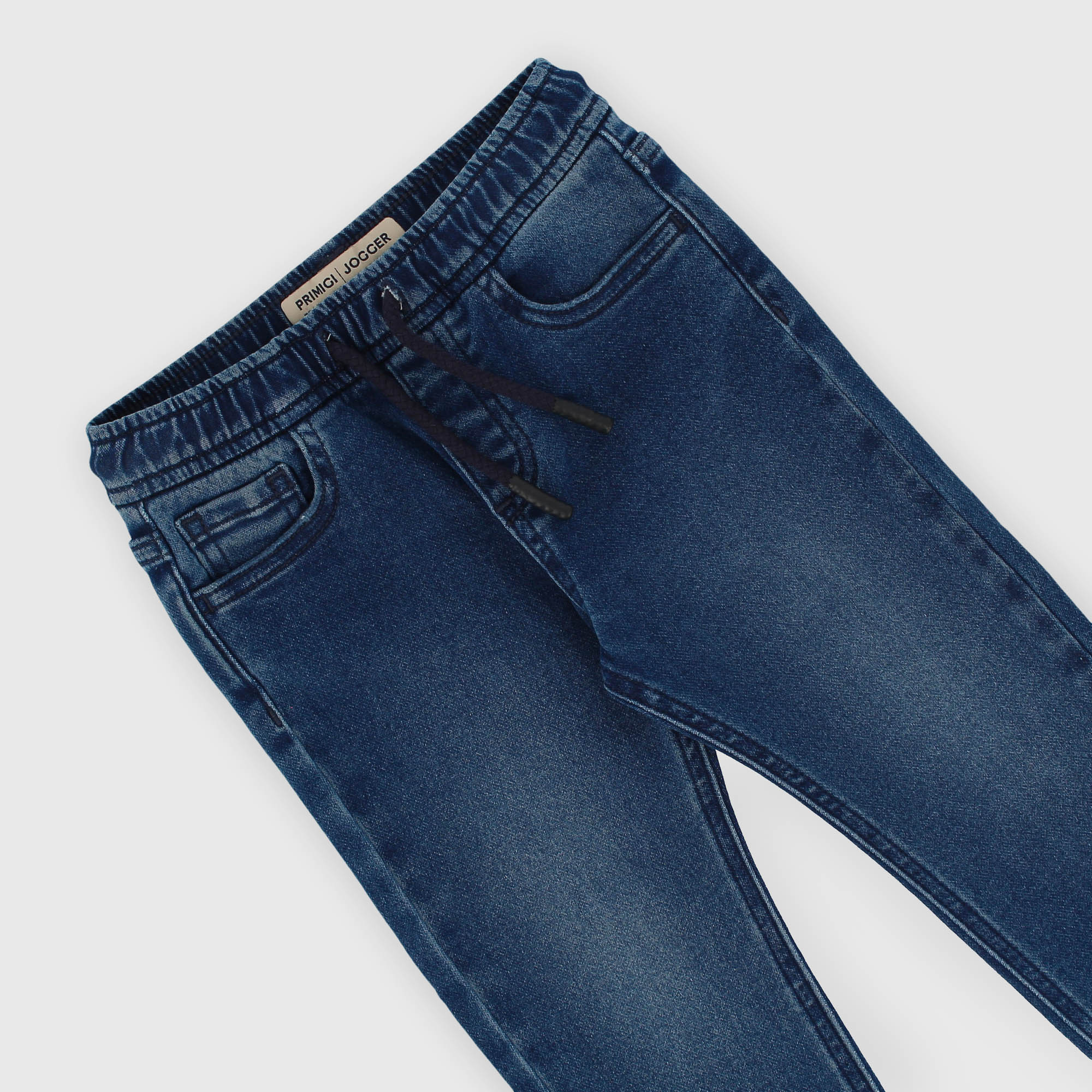 Jogger jeans with elasticated waist and front laces. Elasticated bottom.