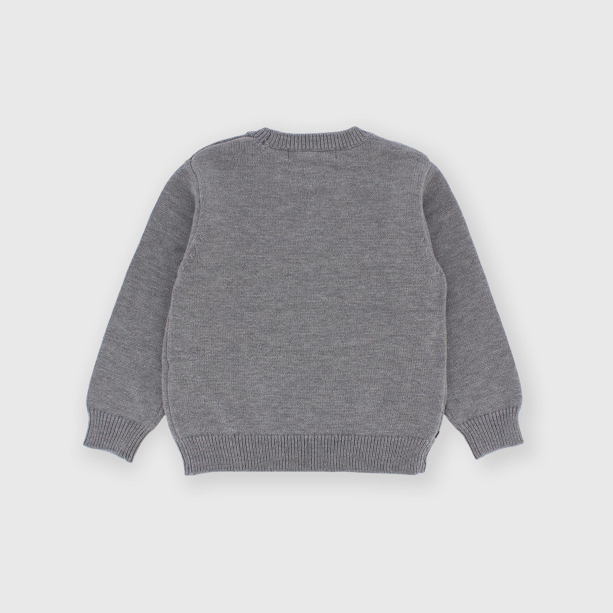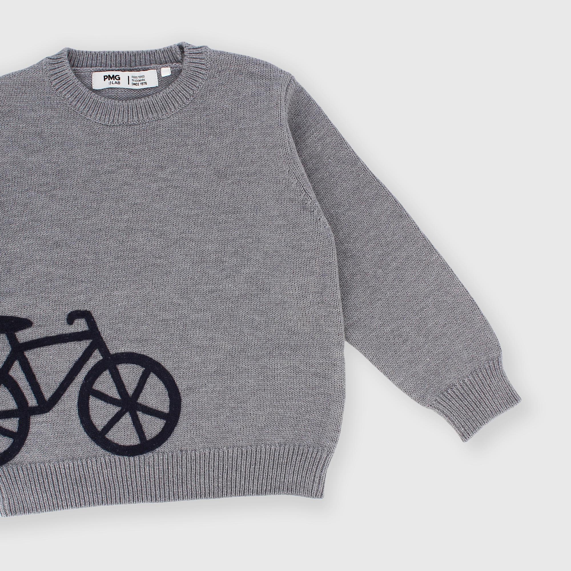 Soft knit pullover, crew neck, long sleeves. Embroidery in the shape of a bicycle on the front.