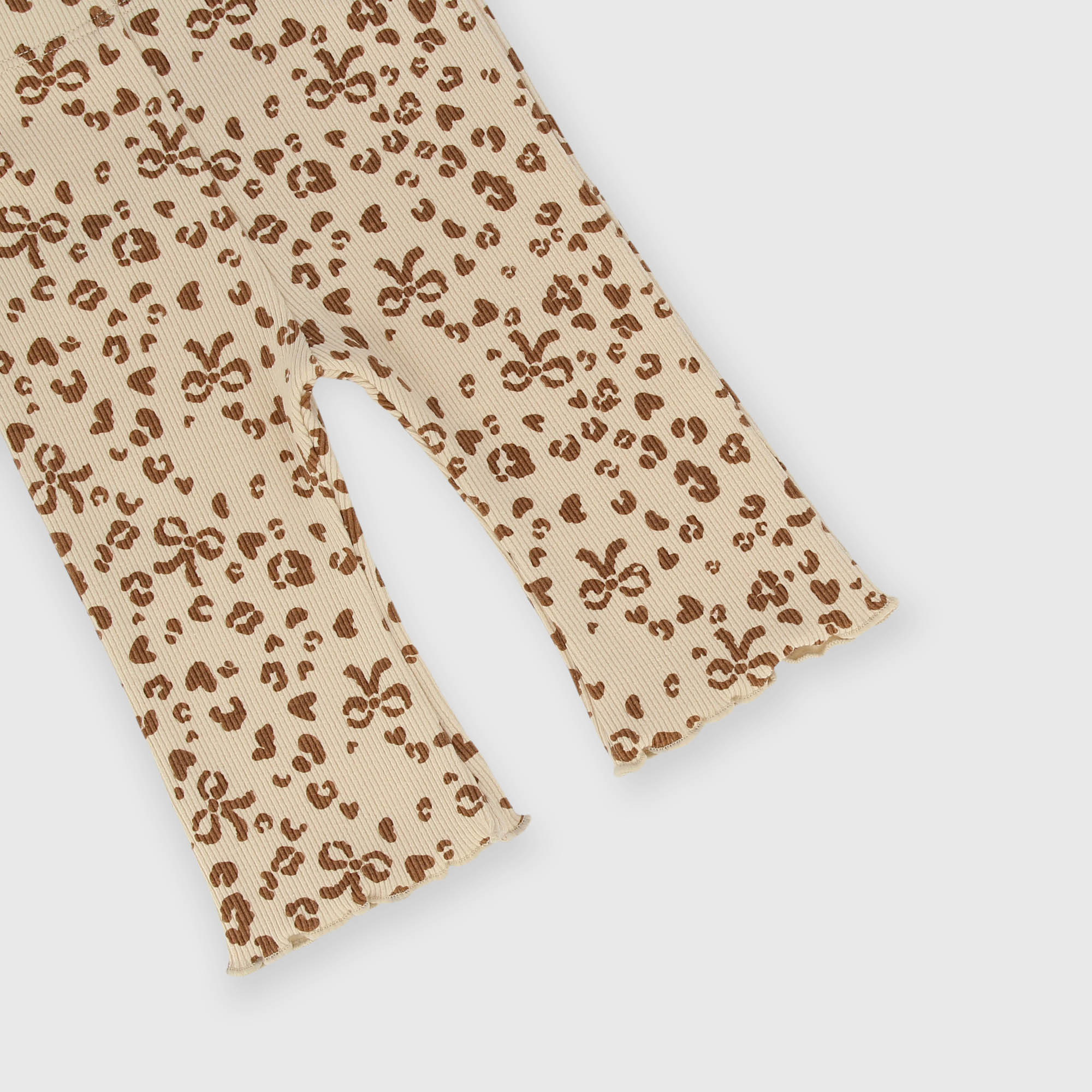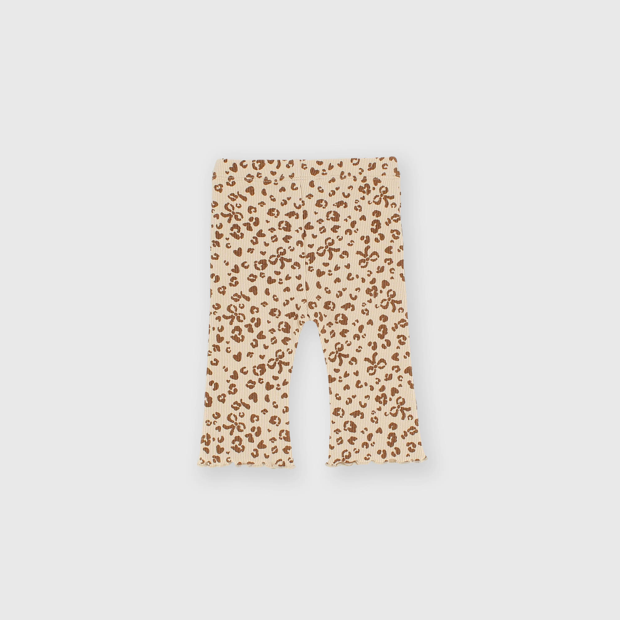 Ribbed bell bottoms. Elasticated waist. All-over animalier print.