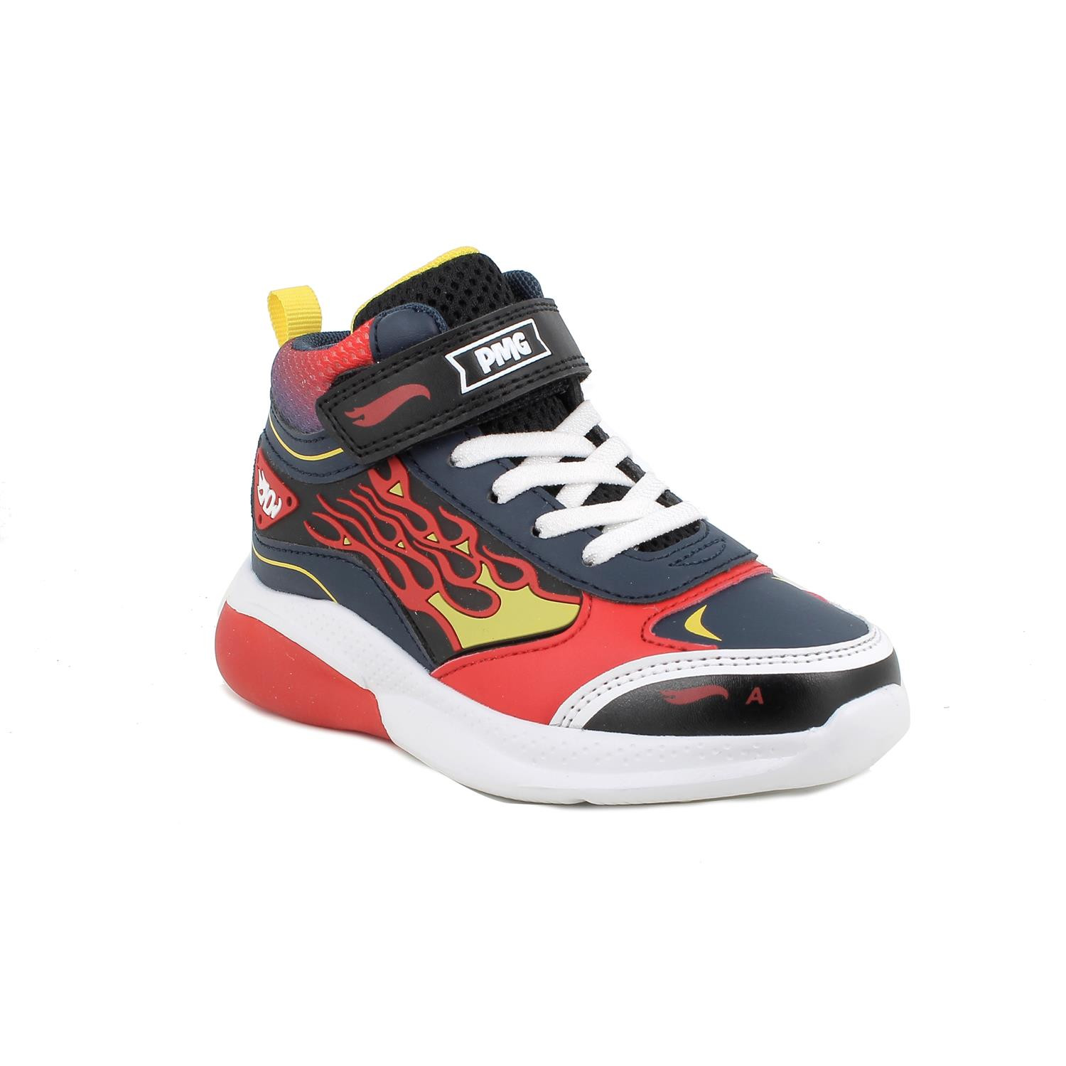 These mid-cut Hot Wheels™ sneakers are pure power on your feet! With side flames, every step is an explosion of energy and style. The bold design, racing colors, and details inspired by the racing world make these shoes perfect for little adrenaline fans. The velcro closure and elastic laces ensure practicality and support, while the lightweight and cushioned sole guarantees comfort in every movement. Perfect for tackling each day at full throttle, between school, play, and limitless adventures. ©2025 Mattel.