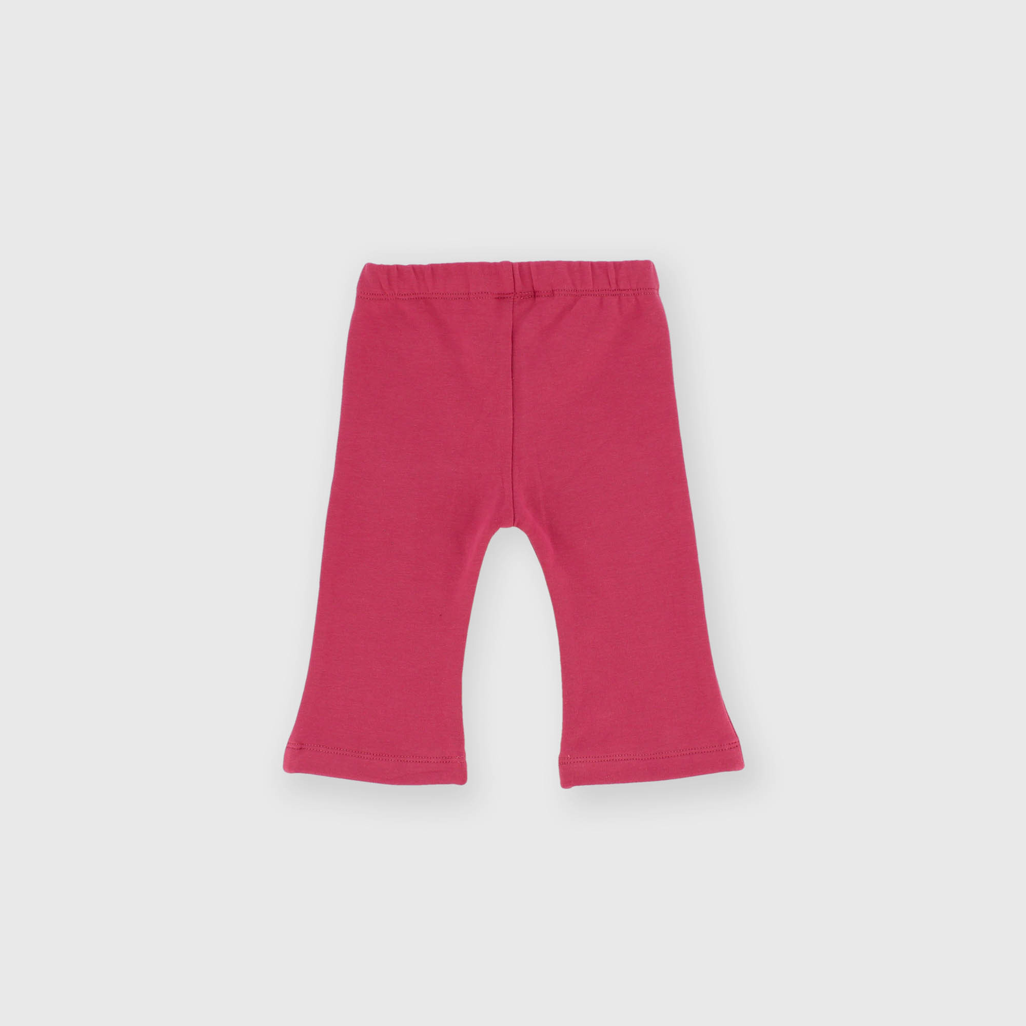 Bell-bottom fleece pants. Elasticized waist and applied bow. Solid color.