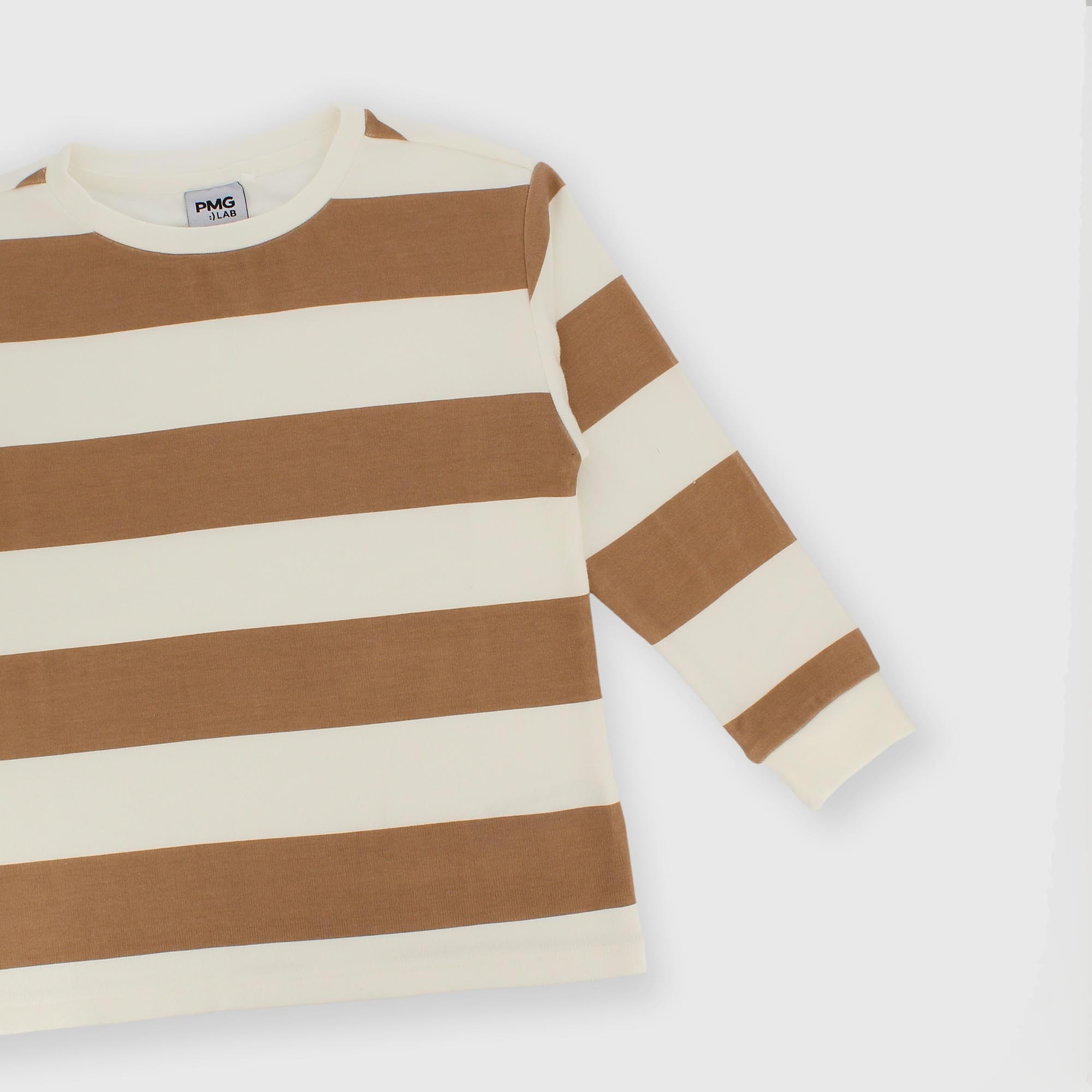 Warm ribbed t-shirt, round neck, long sleeves. All-over striped print.