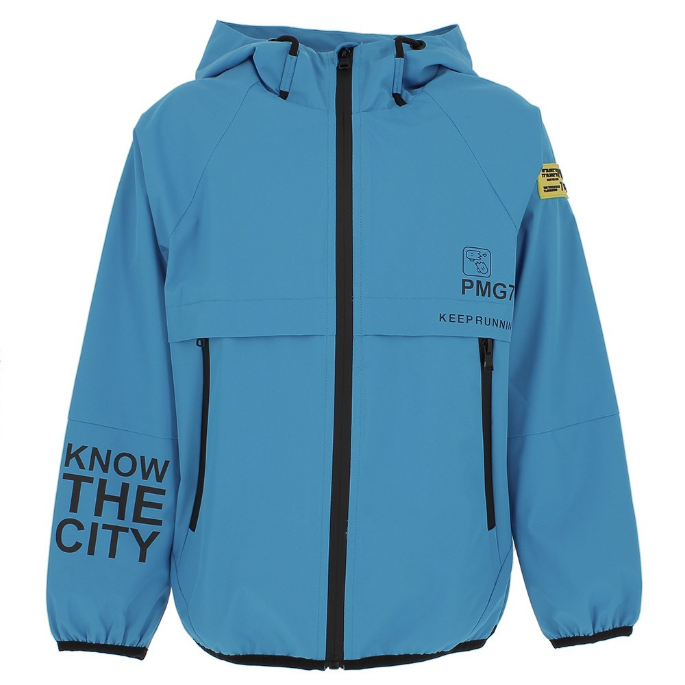 Cazadora con capucha, mangas largas. Cierre frontal de cremallera de goma. Bolsillos laterales con cremallera de goma, parte inferior con elástico. Estampa en la parte delantera y mangas, patch con logo. Forro interior de rejilla.