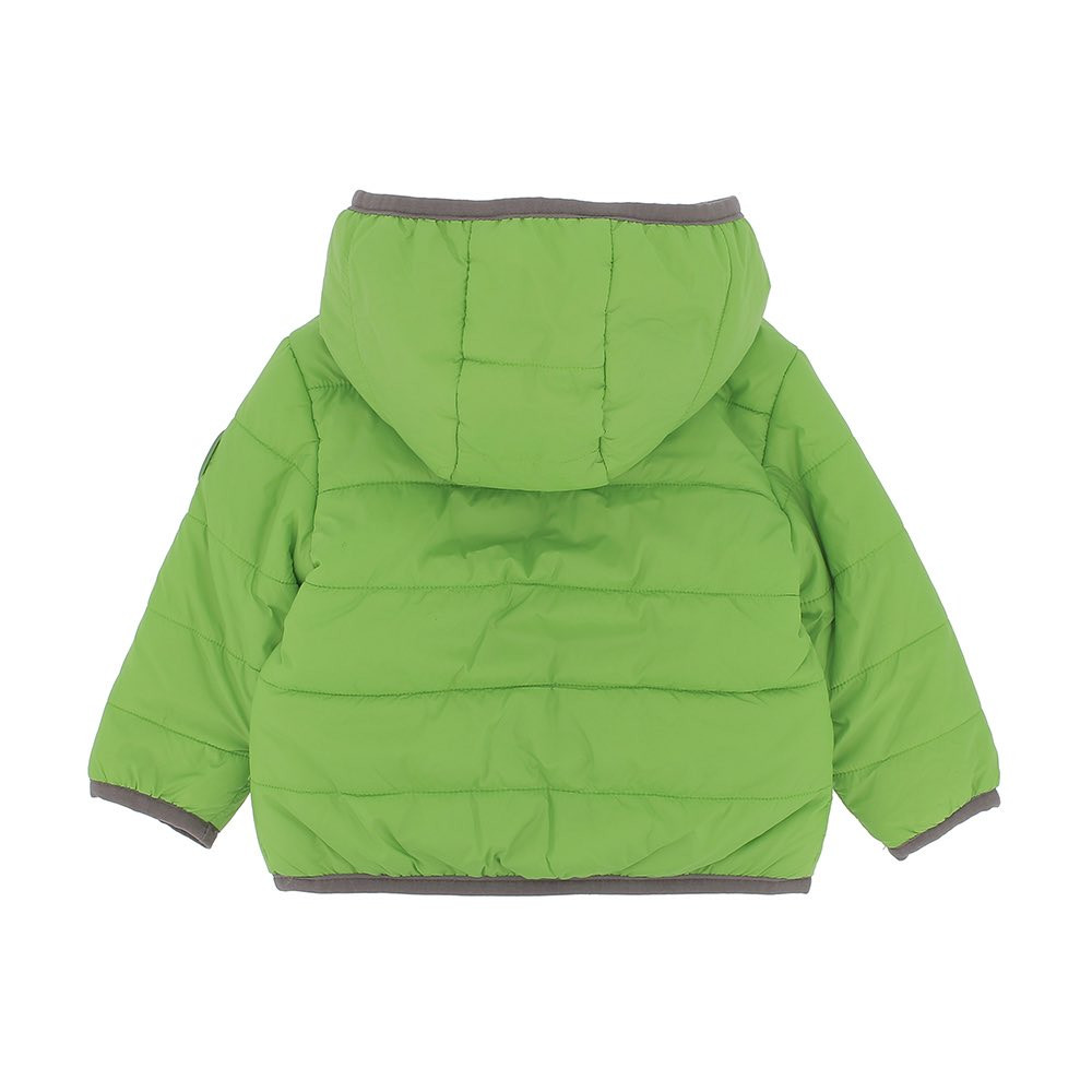 Cazadora acolchada de nylon con capucha, de mangas largas. Cierre frontal de cremallera en contraste. Falsos bolsillos en la parte delantera. Forro interior estampado.