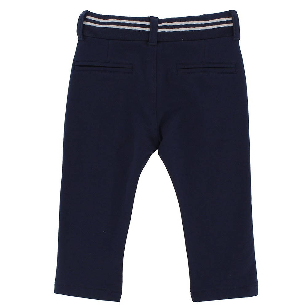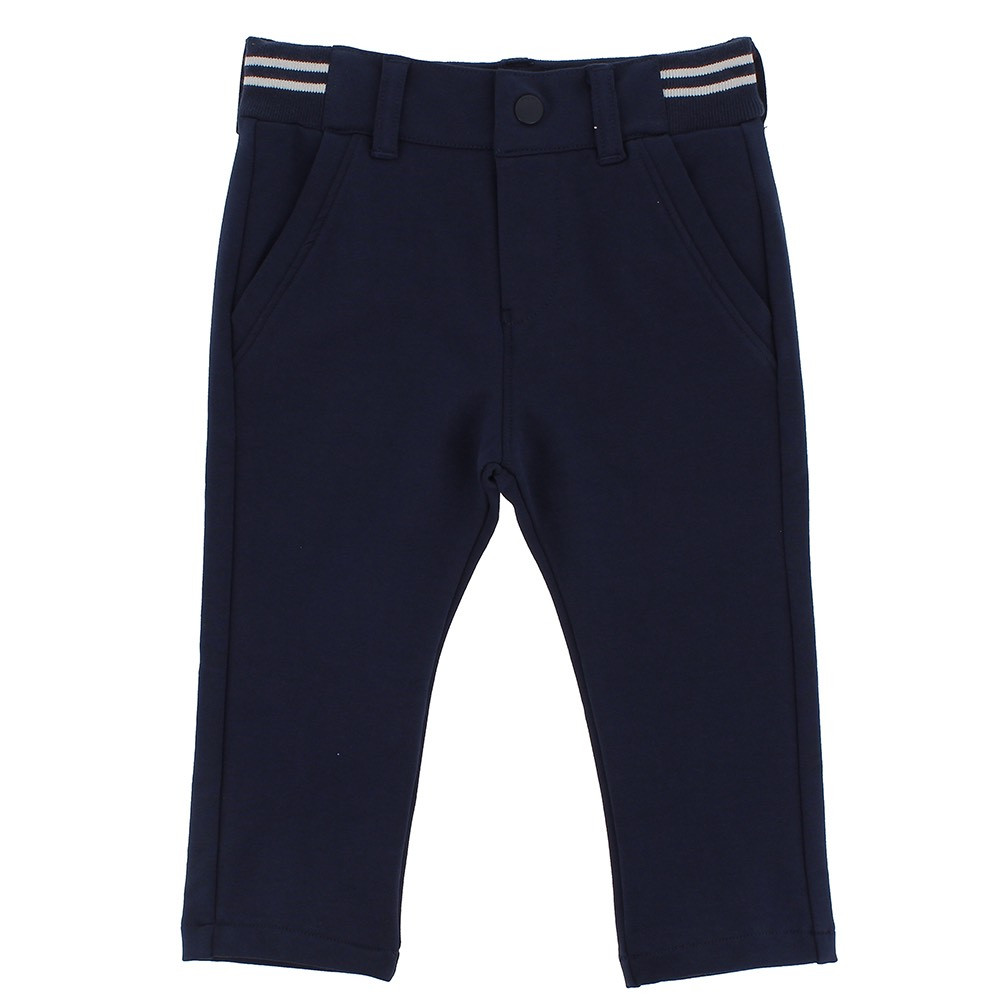 Pantalón de tejido sudadera ligero con cintura elástica. Cierre de botones y automáticos. Bolsillos laterales franceses y bolsillos ojales posteriores.