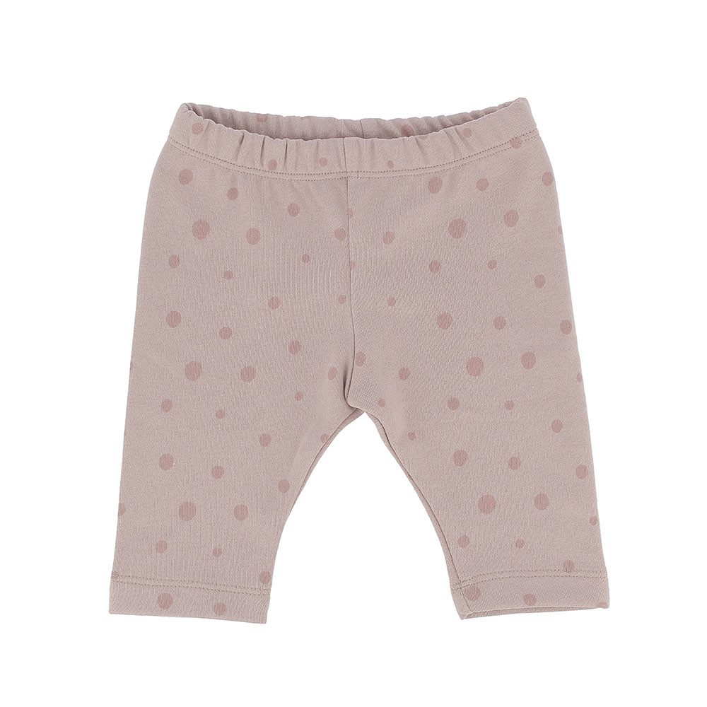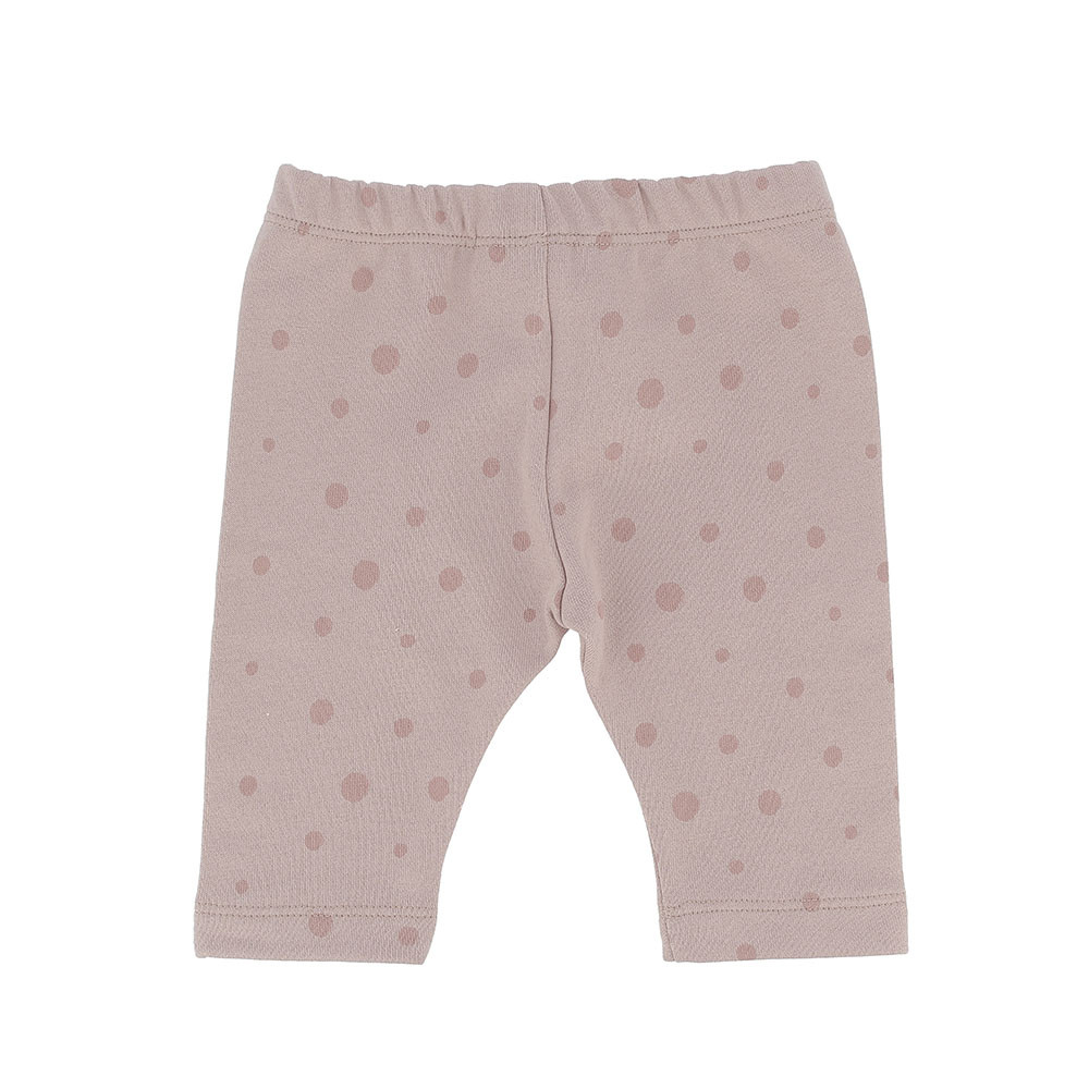 Leggings de tejido sudadera con cintura elástica. Lunares estampados all over. Esta prenda es eco-sostenible porque está fabricada principalmente con tejidos de fibras recicladas.