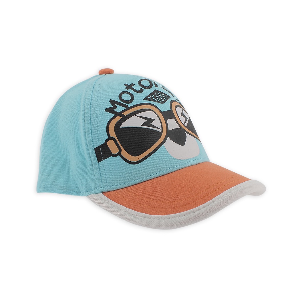 Gorra de baseball de jersey con estampa en la parte delantera y contornos en contraste. Ira de velcro ajustable por la parte posterior.