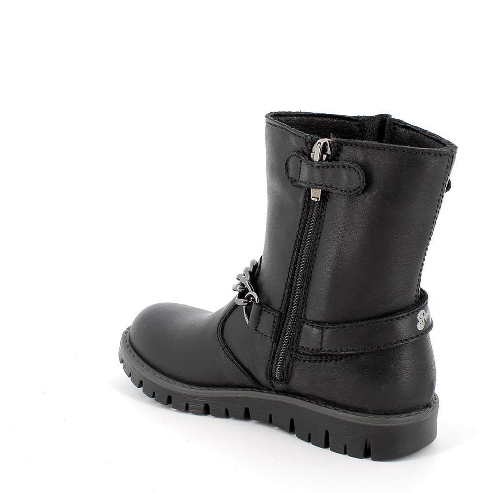 Suaves botines de piel de alma rock y a la moda, perfectos para las niñas que quieren sentirse mayores. Los detalles de estilo regalan personalidad y fuerza. La horma esredonda para evitar culaquier restricción y regalar la máxima comodidad. La suela tiene profundas ranuras que exaltan su flexibilidad. El pie apoya en una confortable plantilla que puede extraerse para una mayor higiene.