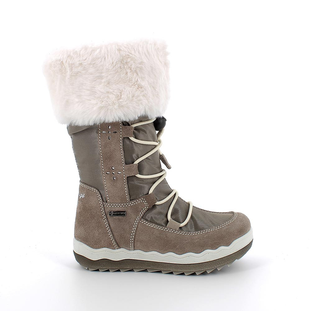 Las botas de las modernas princesas de las nieves está adornadas siempre por un pelo rigurosament sintético. Estas son muy suaves y cálidas y además cómodas. Están realizadas con tecnología Gore-tex para asegurar un confort total en cualquier condición climática. Tienen un elástico que permite un correcto ajuse a la pierna y una cremallera lateral para calzarlos fácilmente. El pie apoya en una confortable plantilla que puede extraerse para una mayor higiene.