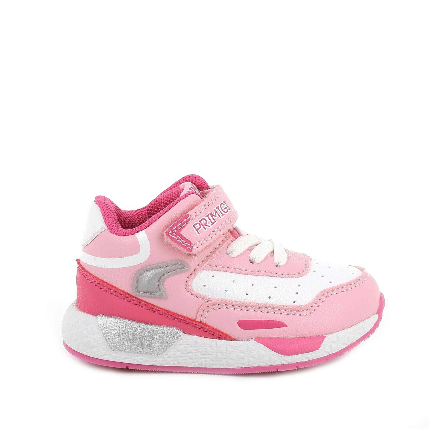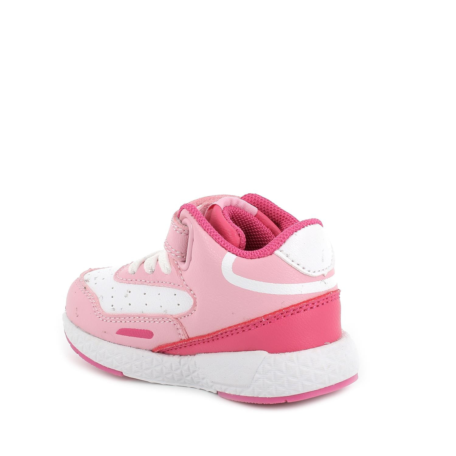 Zapatillas deportivas primeros pasos inspiradas en el mundo del baloncesto. Son zapatos con una estructura pensada para soportar y proteger sólidamente el tobillo. Tienen un calce fácil y ajustable con velcro individual y cierre con cordón elástico. El forro está fabricado con suave material técnico para ofrecer al pie un ambiente cómodo. La suela es resistente, estable y a la vez muy ligera. La plantilla anatómica es extraíble y está recubierta de piel para asegurar transpirabilidad e higiene