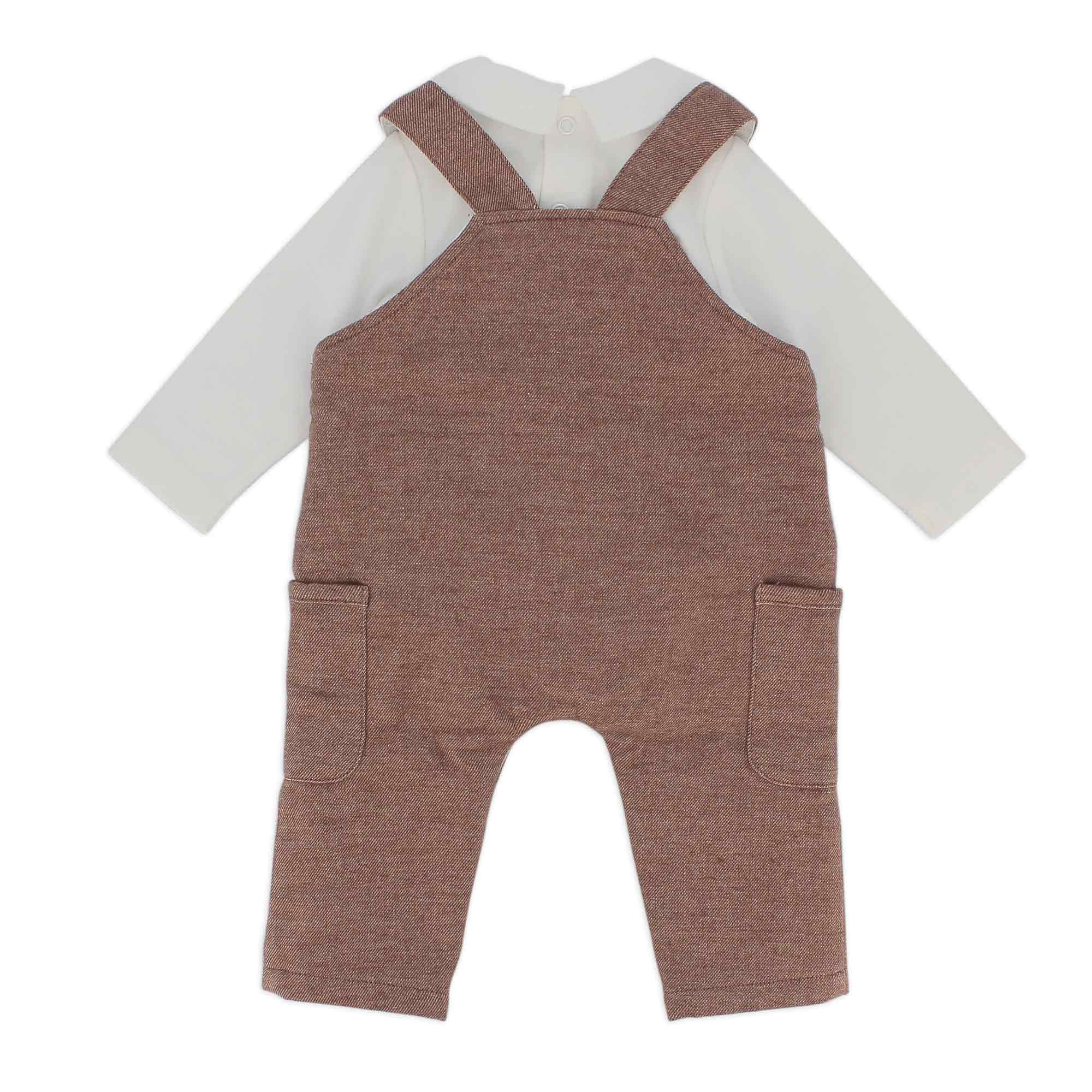 Conjunto de dos piezas. Body con cuello y mangas largas. Peto de paño efecto lana. Cierre con botones en la parte delantera, lateral y tiro. Bolsillos de parche laterales. Donosaurio bordado en la parte delantera. Forro interior de tejido jersey.