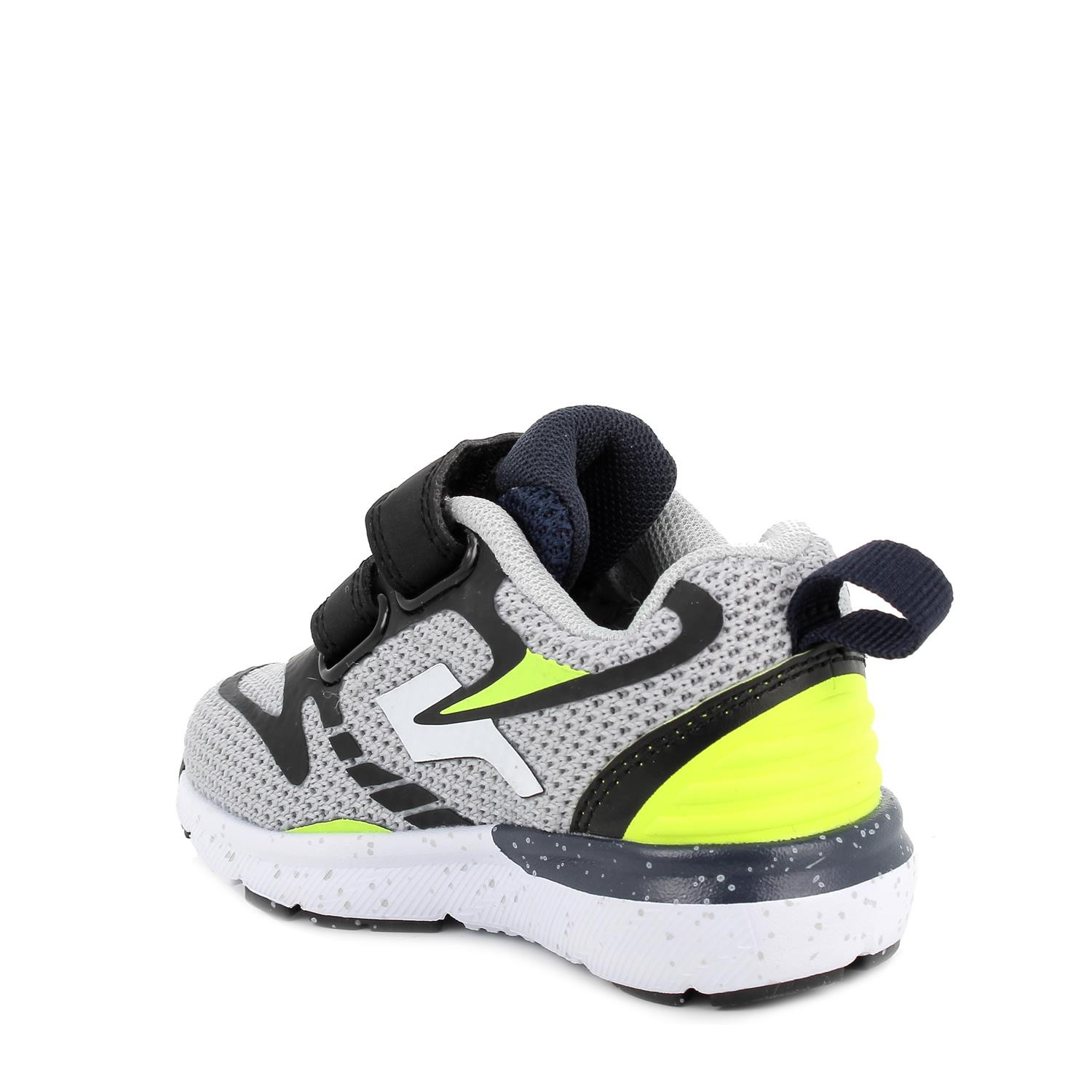 Zapatillas deporgivas de primer paso que combinan perfectamente practicidad y moda. Coloridos y de alma activa, son rapidísios de calzar gracias a los dobles velcors. El suave acolchado en el tobillo soporta delicadamente el pie. La suela es cómoda, ligera y resistente para permitir al niño caminar y jugar en libertad. La plantilla es extraíble y está recubierta de piel para asegurar transpirabilidad e higiene.