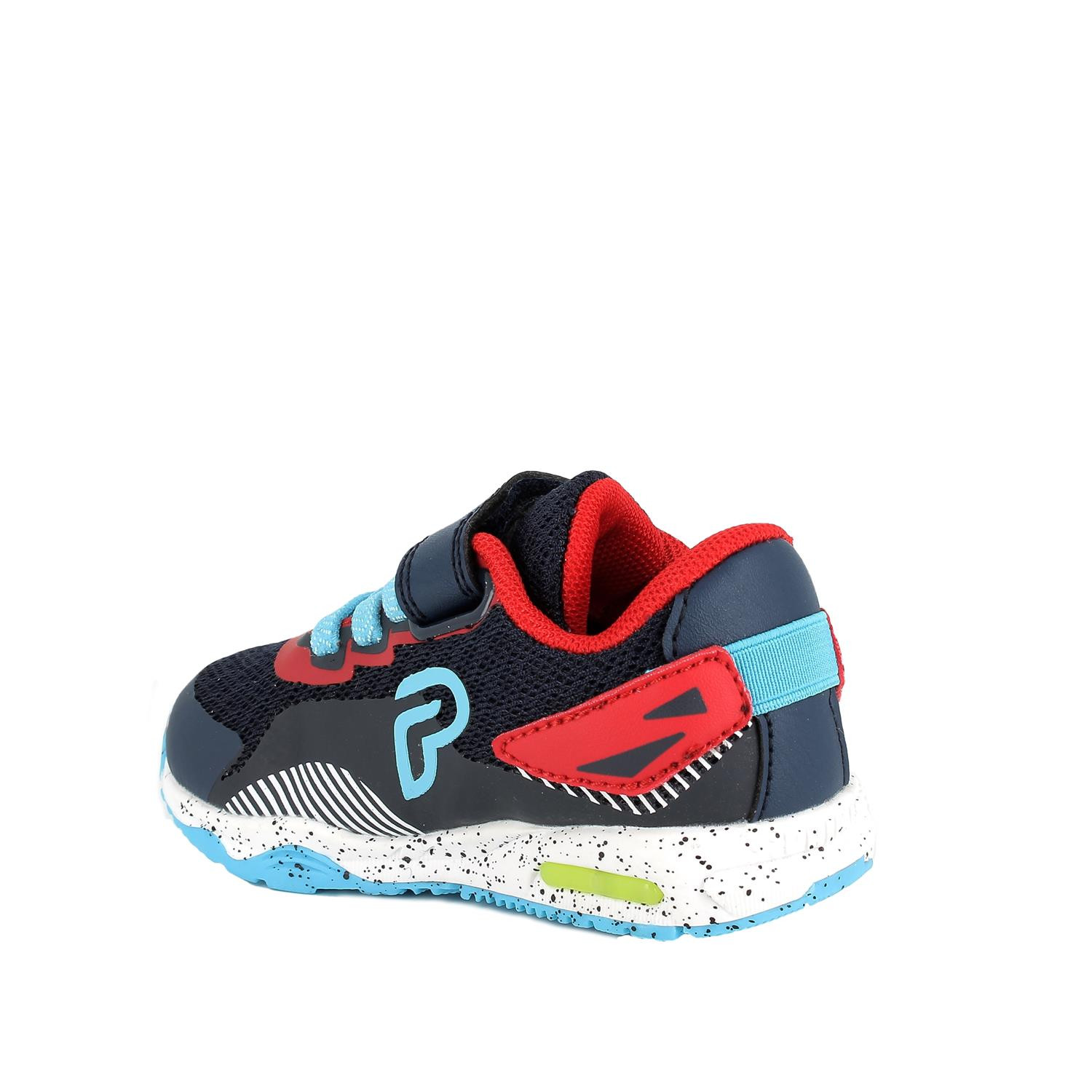 Zapatillas deportivas primer paso con luces de inspiración active. Fabricadas con tejido técnico, tanto en la parte exterior como en la parte interior, tienen elementos de protección en los puntos de contacto. Los acolchados del tobillo protegen el pie delicadamente y lo soportan correctamente. La suela es ligerísima y el diseño de la huella está pensado para conferir una tracción superior y favorecer el movimiento. La plantilla es extraíble y está recubierta de piel para asegurar transpirabilidad e higiene.