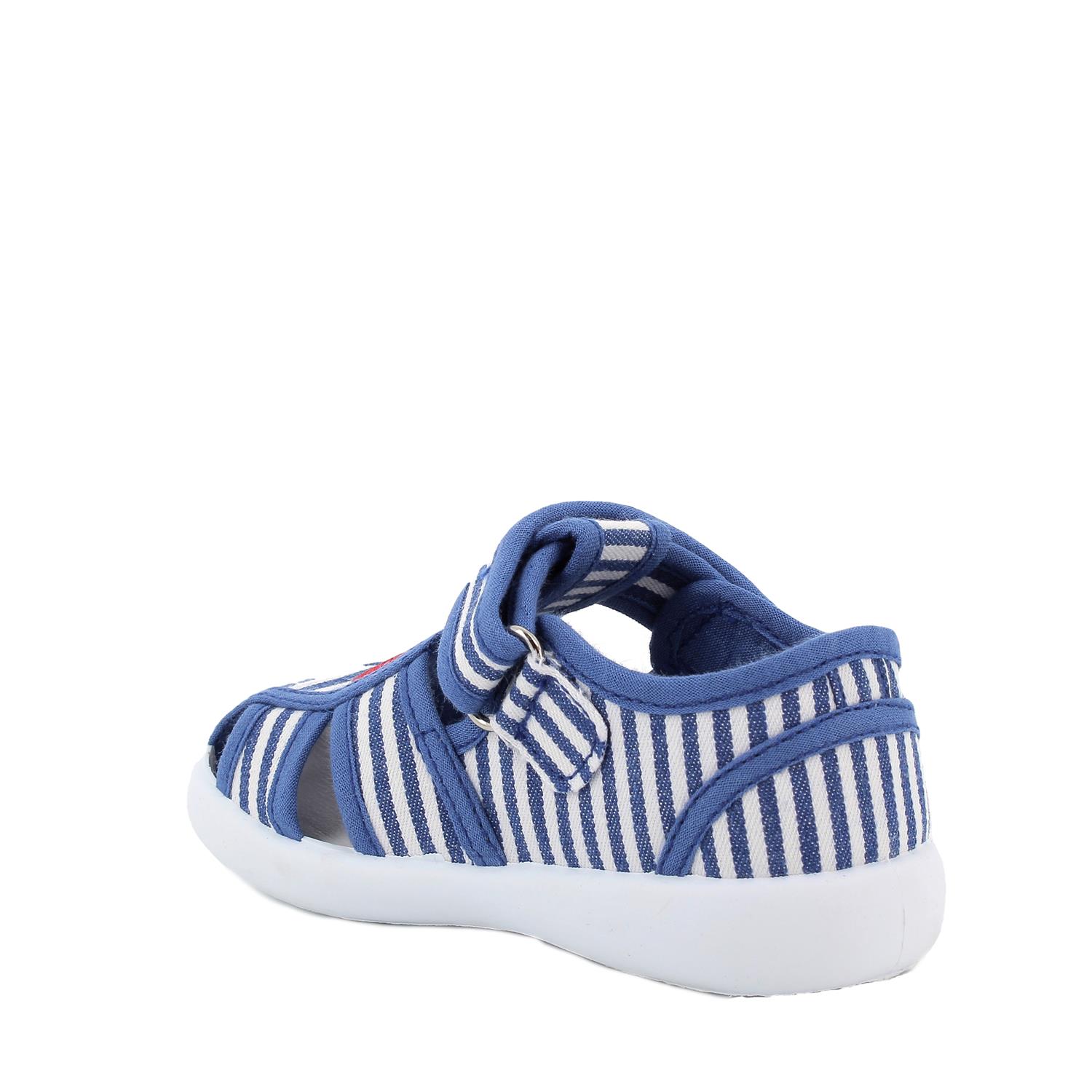 Las sandalias cerradas de tela son un gran clásico del verano para los pequeños aventureros. También son divertidas y coloridas. Transpirables y ligeras, la parte superior es envolvente y protege al pie dejándole la libertad necesaria. La tira de velcro asegura un ajuste correcto. El apoyo es delicado e higiénico gracias a la plantilla de piel. La suela tiene una gran flexibilidad para facilitar la pisada.
