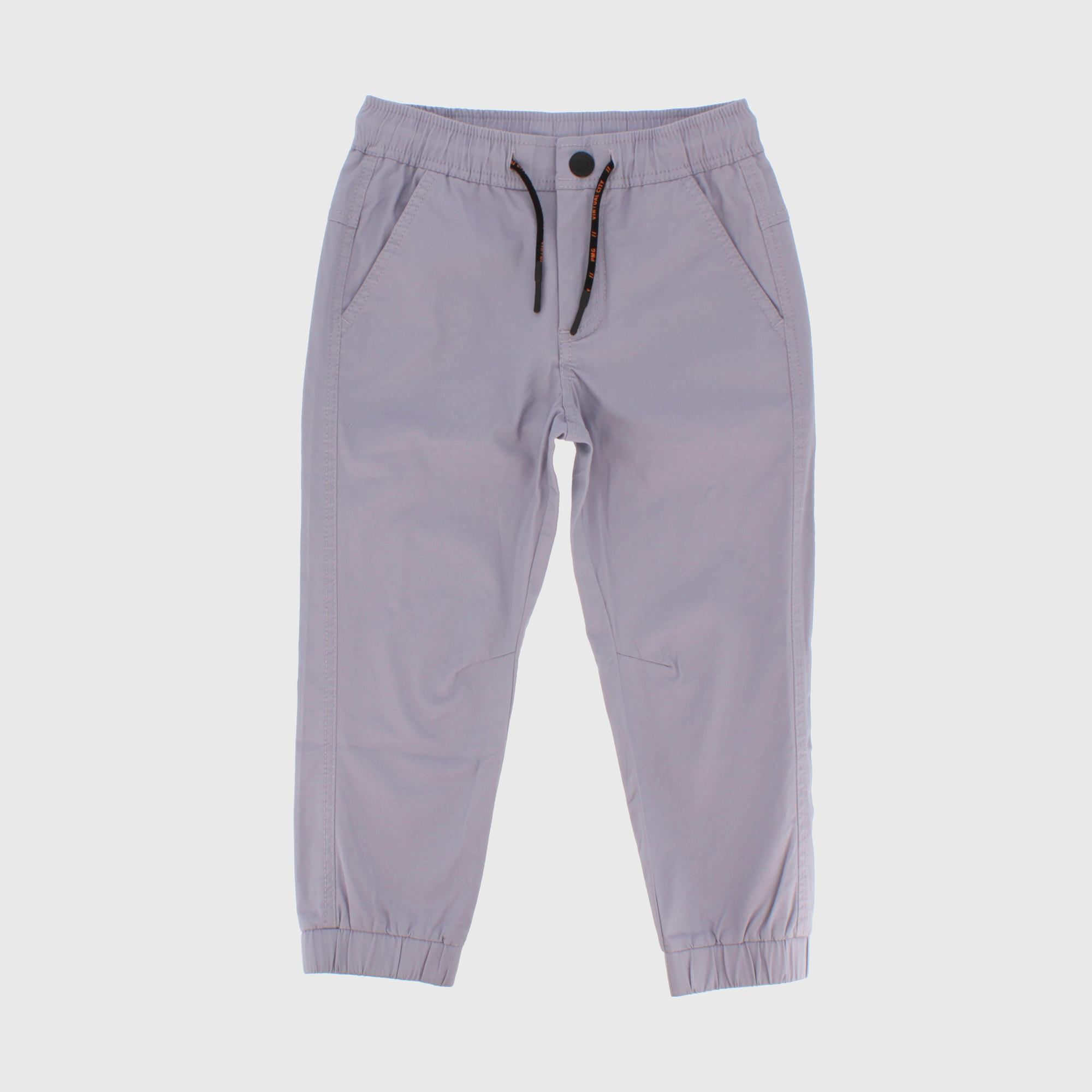 Pantalón de tejido gabardina y cintura elástica con cordones. Bolsillos franceses. Parte inferior elástica. Corte pull-on.