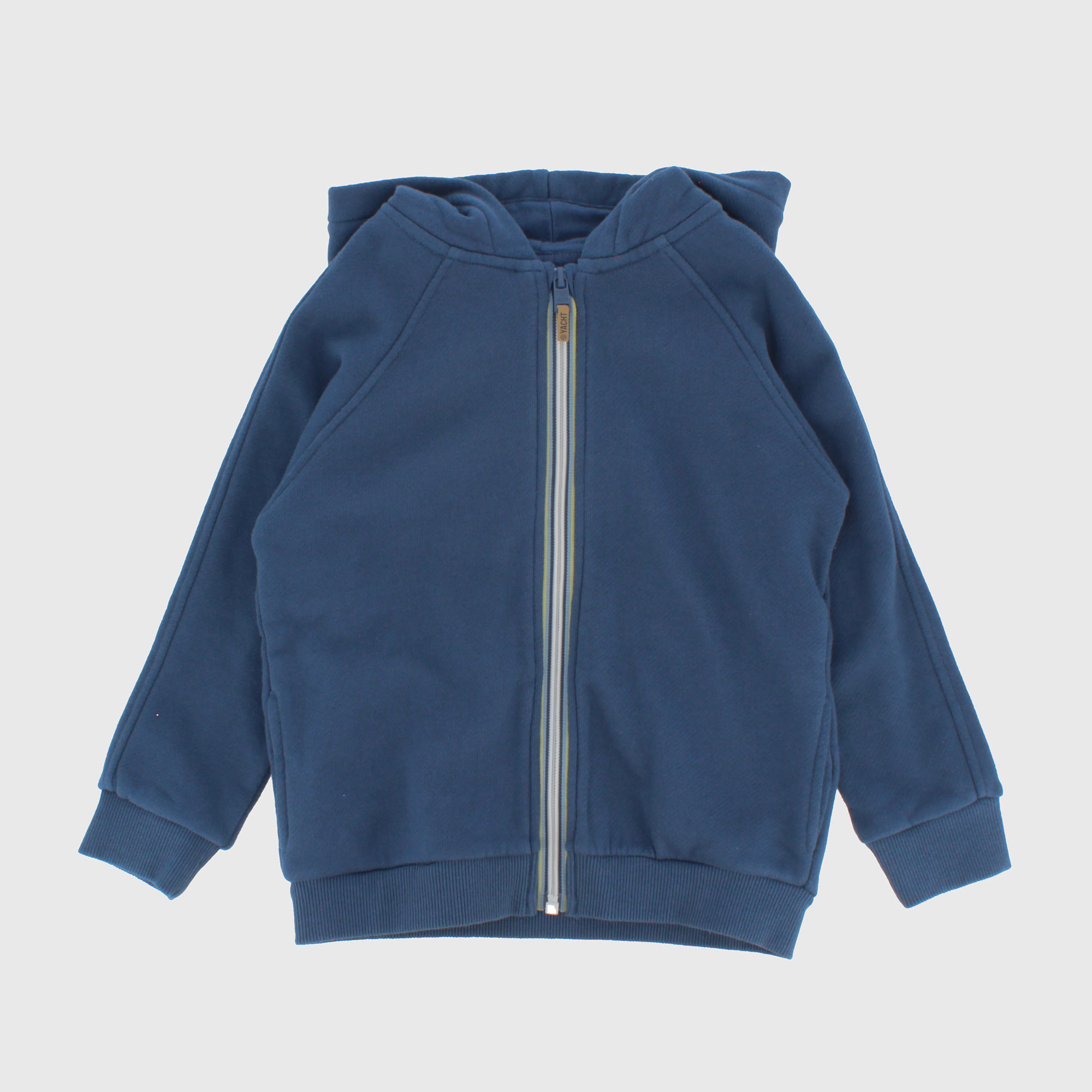 Sudadera abierta con capucha, mangas largas. Cierre con cremallera delantera de rayas. Bolsillos ocultos. Puños y parte inferior pana.