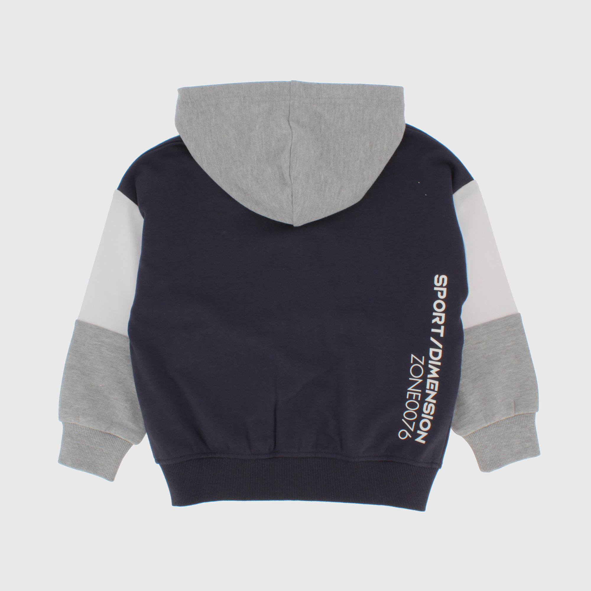 Sudadera abierta con capucha, mangas largas. Cierre con cremallera delantera. Parte delantera con bolsillo canguro y escritas efecto goma impresas.