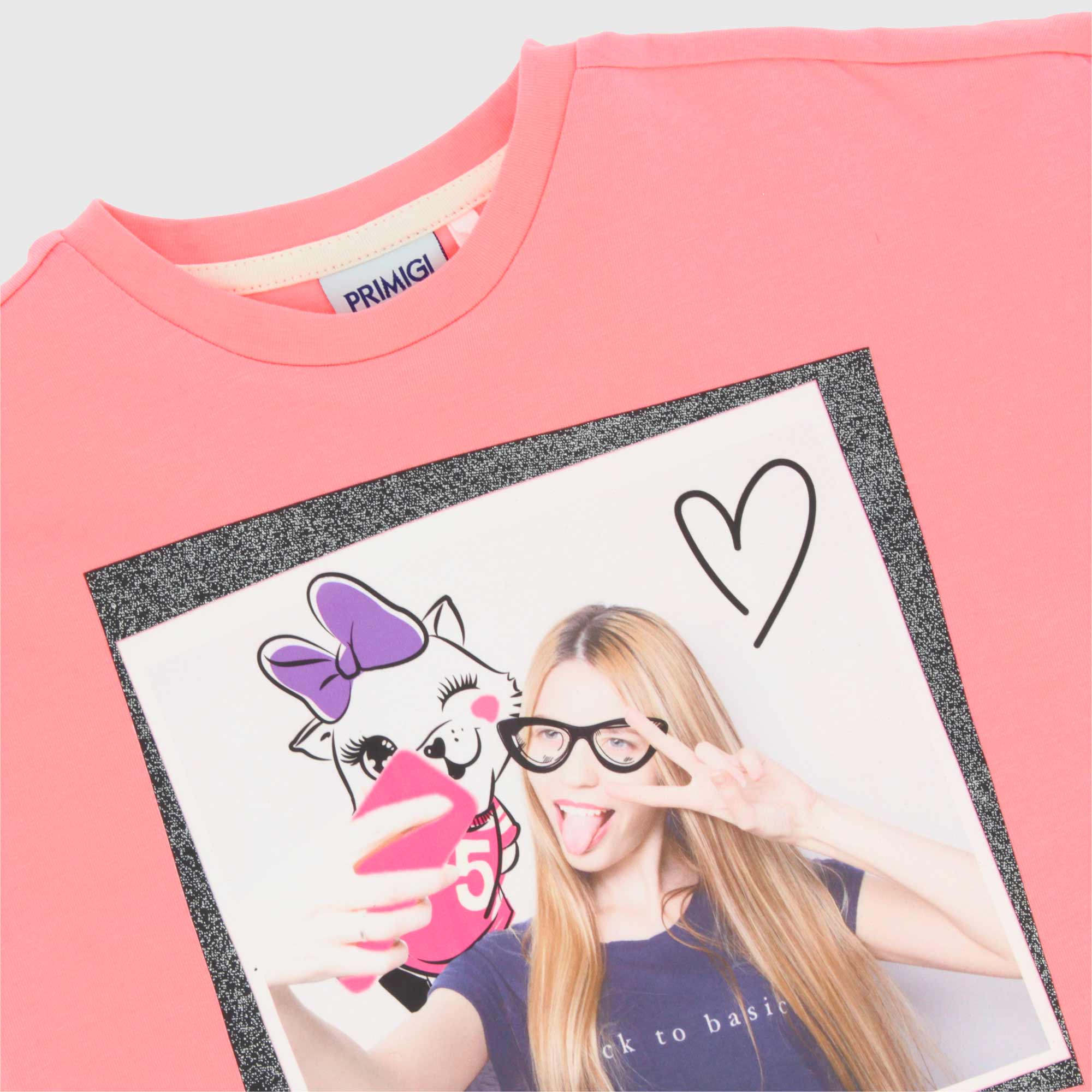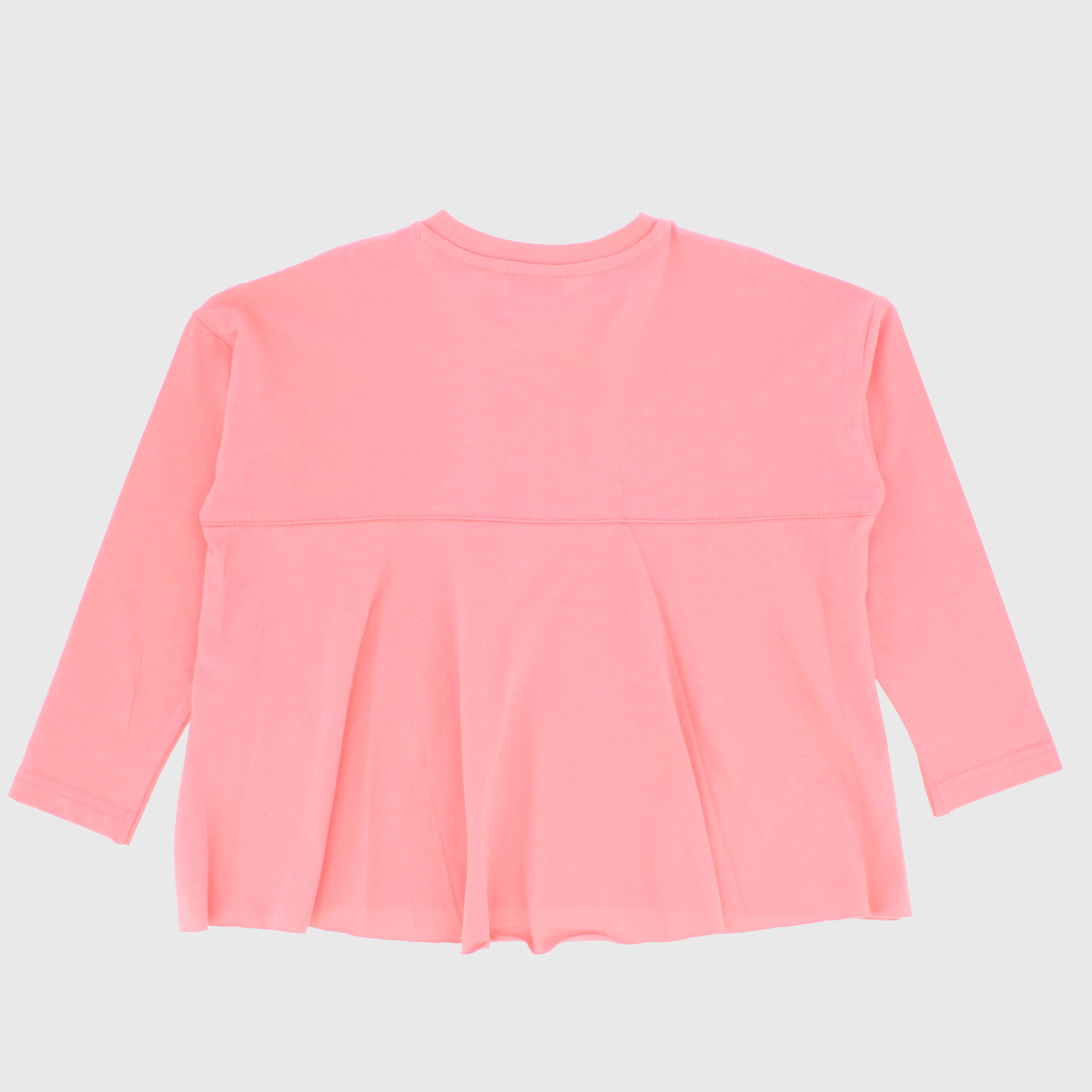 Camiseta de tejido tipo jersey, cuello redondo, mangas largas. Parte delantera estampada con adornos brillantes. Parte inferior trasera sin dobladillo.