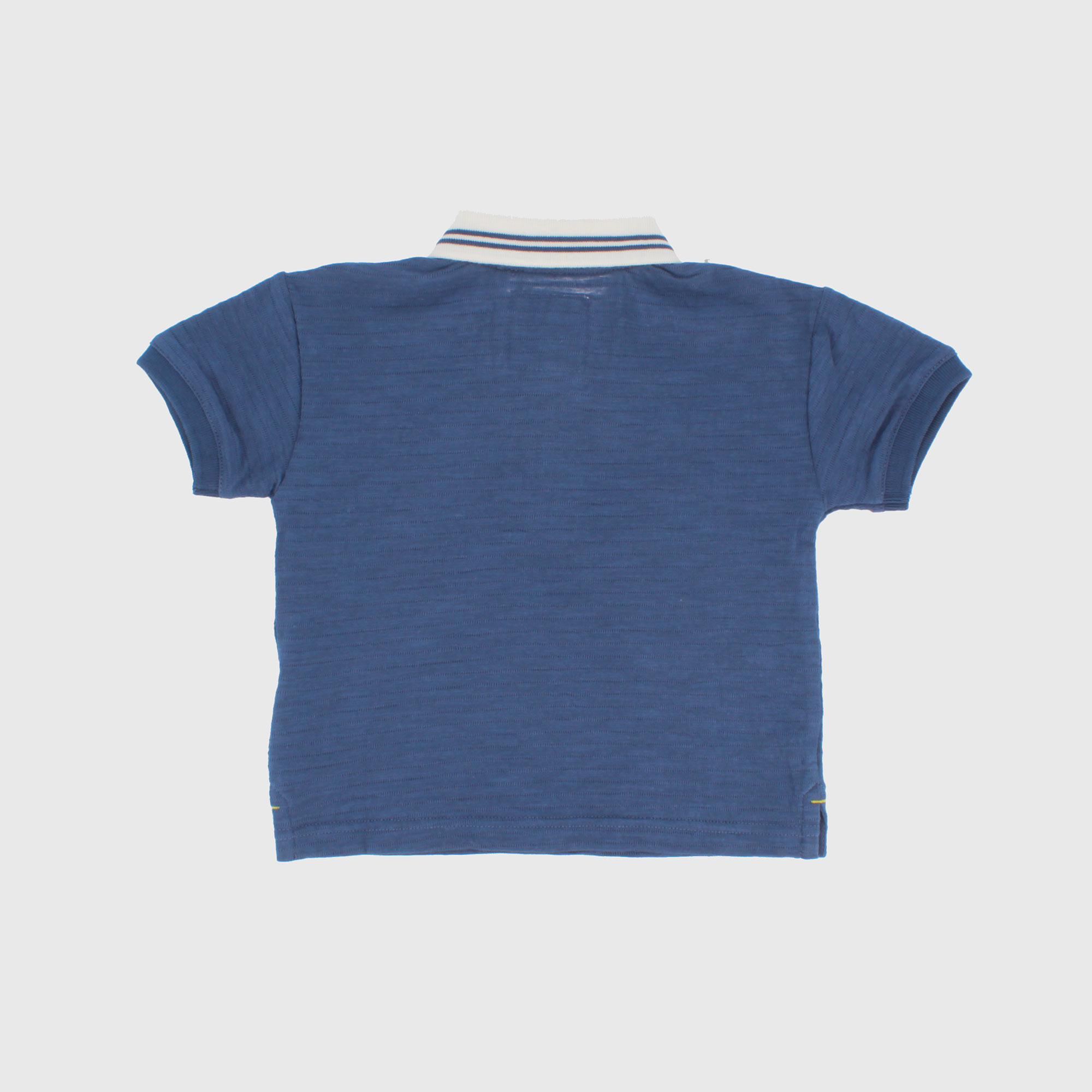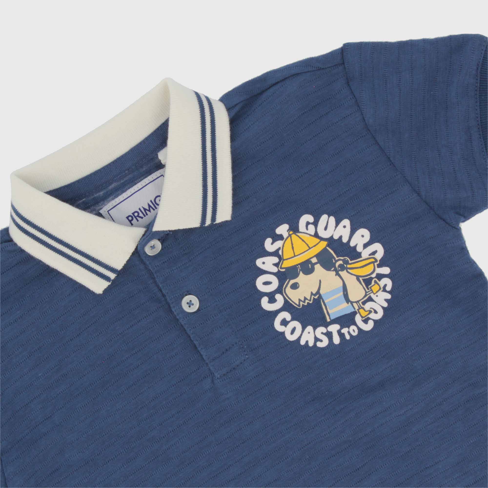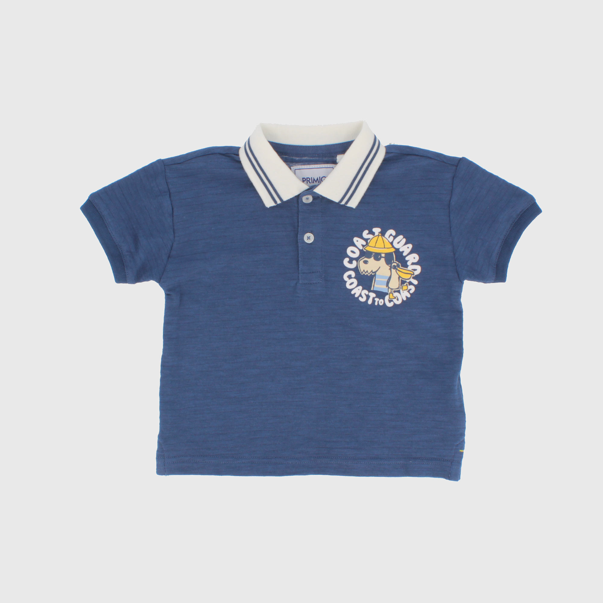 Polo de tejido tipo jersey, mangas cortas, con cuello de rayas en contraste. Cierre con botones delanteros. Parte delantera estampada.