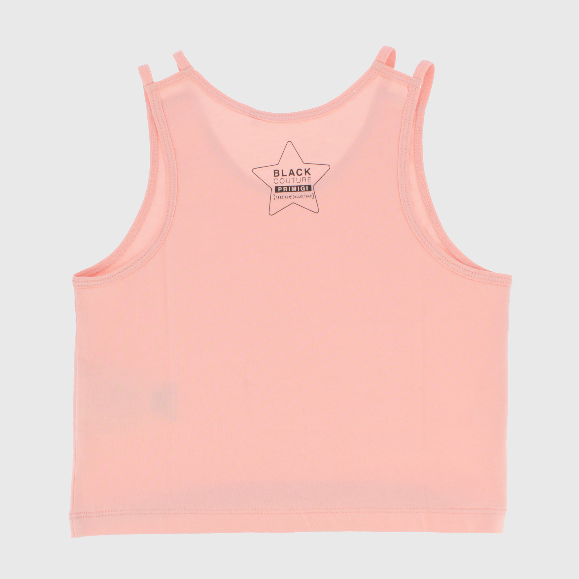 Camiseta de tirantes de tejido de jersey con cuello redonod. Doble tirante en el hombro. Estrella estampada en la parte trasera.