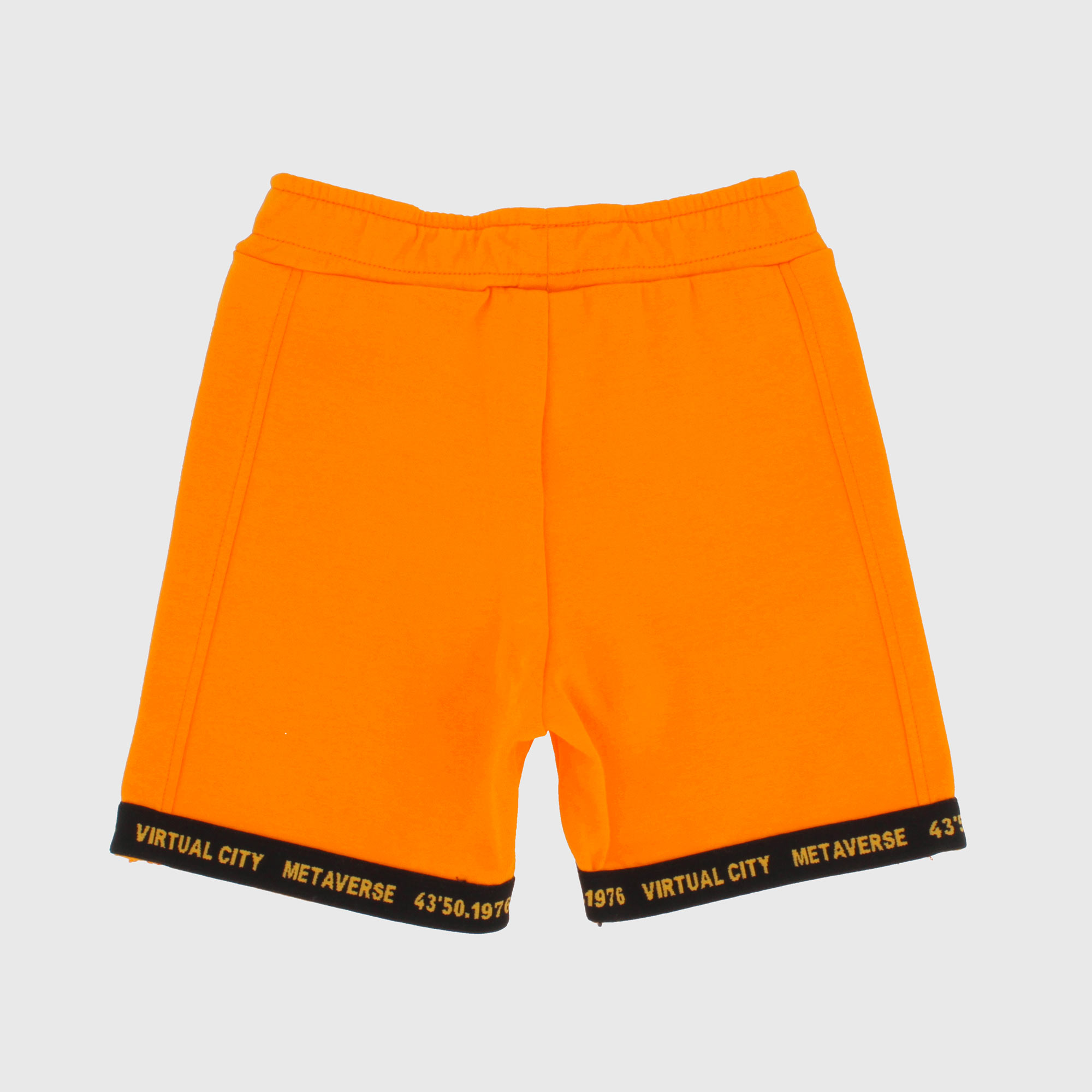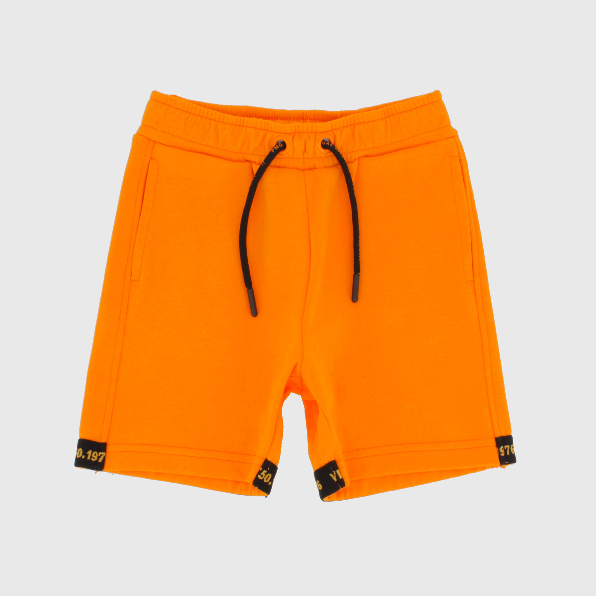 Bermuda de jersey doblado con cintura elástica y cordones delanteros. Bolsillos laterales ocultos. Bandas en contraste en la parte inferior.