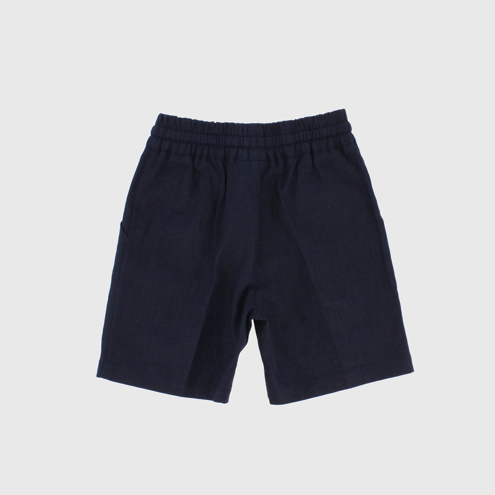Bermuda de algodón- lino con cintura elástica. Bolsillo franceses.