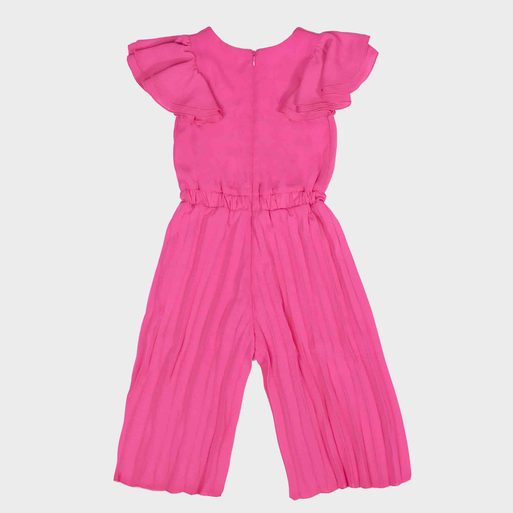 Chándal de cuello redondo con mangas mariposa y pantalón plisado. Cintura con elástico y cierre con crremallera ocutla en la parte trasera. Forro pantalón.