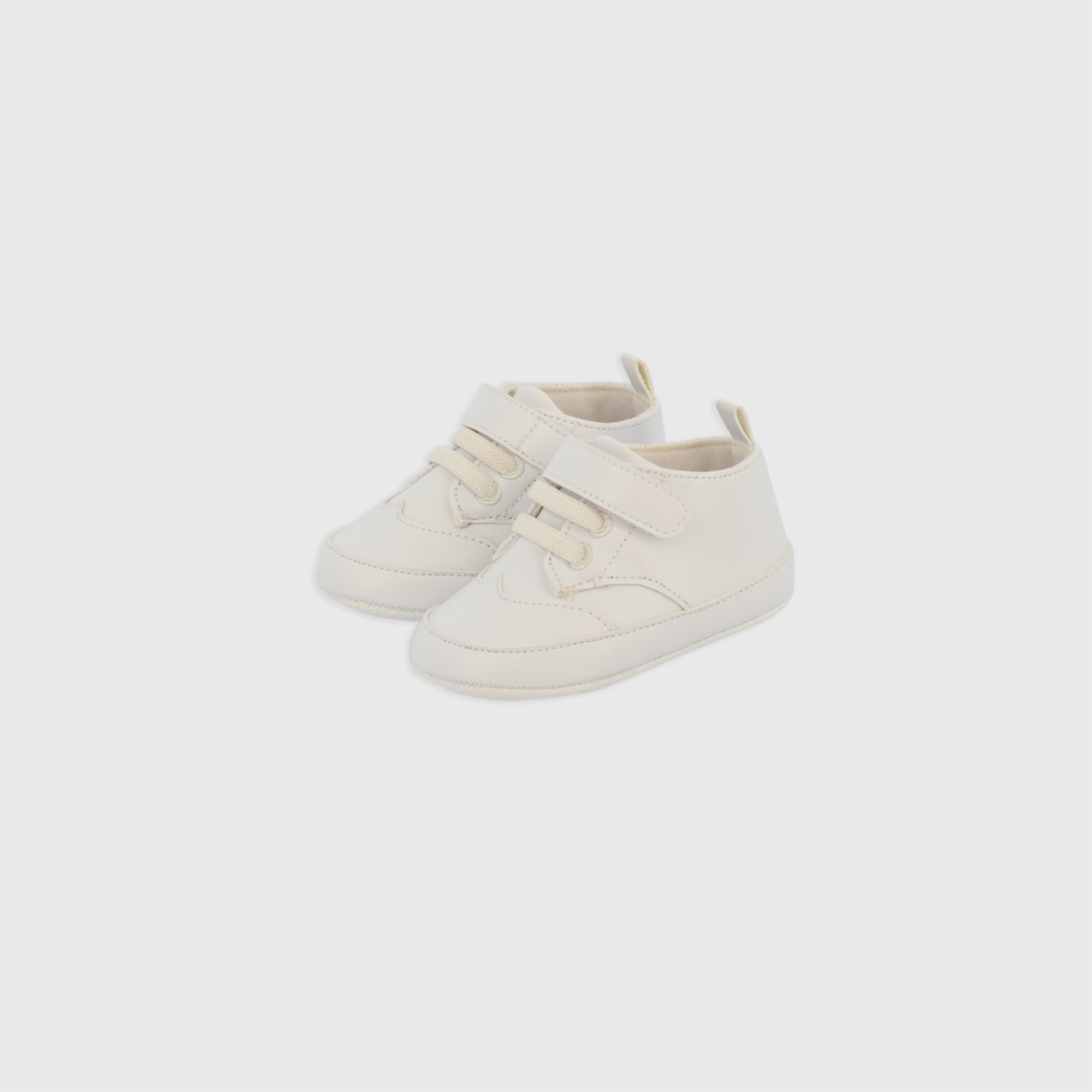 Zapatillas deportivas de recién nacido con velcro y cordones.
