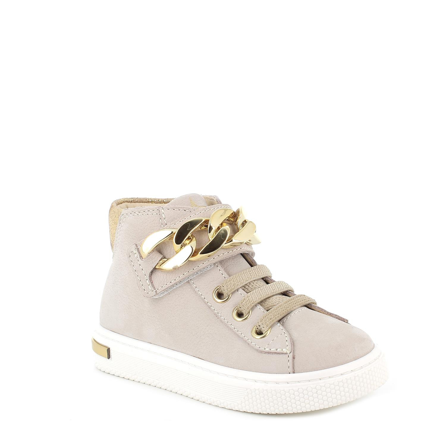 Si en casa hay una niña que capta todas las tendencias de la moda, querrá tener las zapatillas con el accesorio más de moda de la temporada: la cadena. No te preocupes, es muy ligera y no será ningún obstáculo para las carreras de las chicas que se sentirán grandes de inmediato. La parte superior y el forro son de piel, por lo que estas zapatillas deportivas son de gran calidad y muy cómodas. La suela, de hecho, tiene la punta redondeada y es muy flexible. La plantilla anatómica es extraíble y revestida en piel para garantizar transpirabilidad e higiene