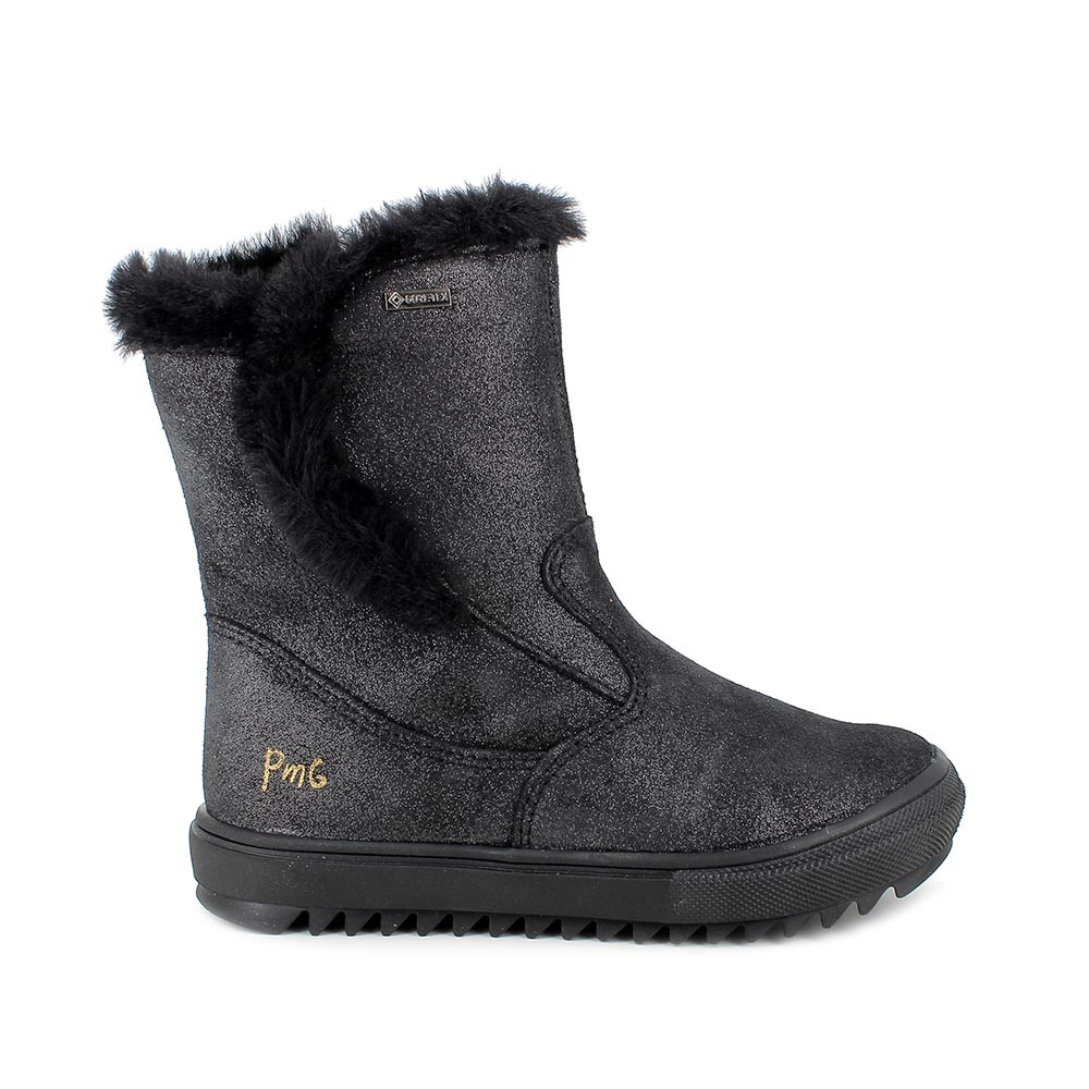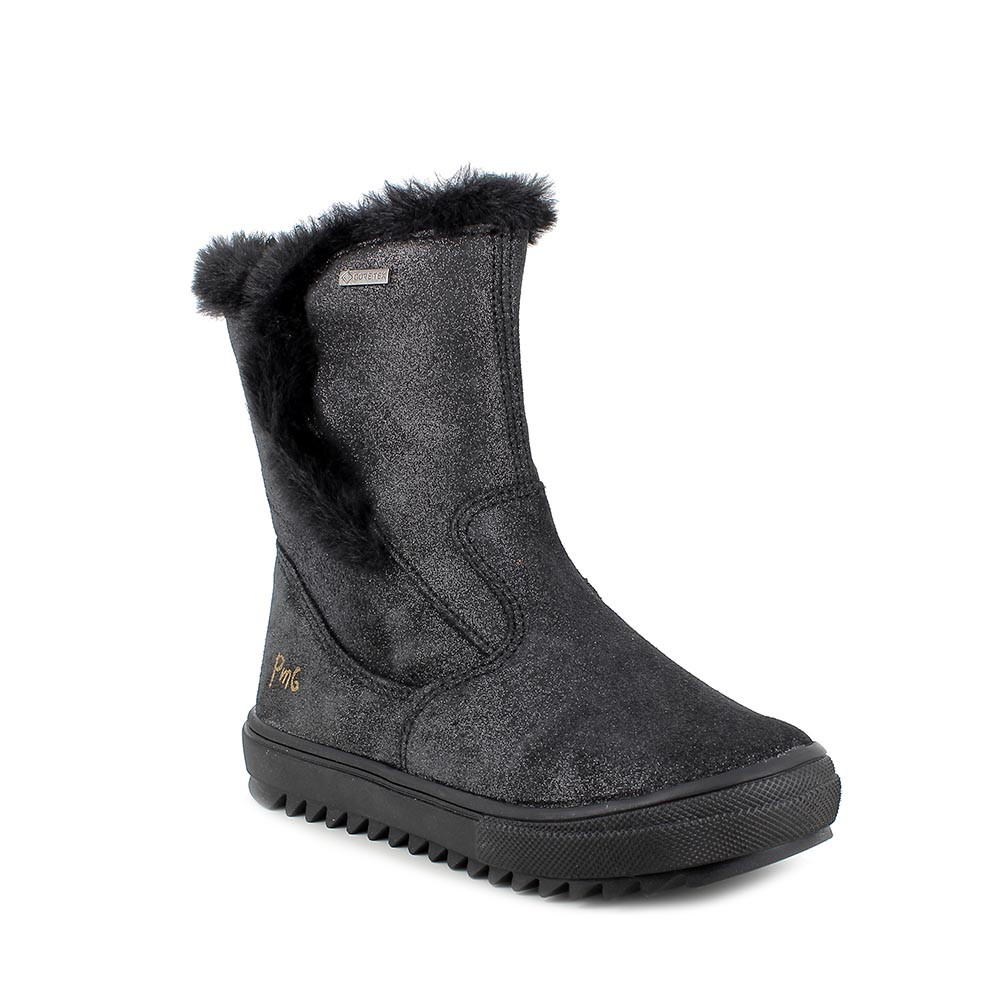 botines gore-tex de niña, en piel, negro brillante