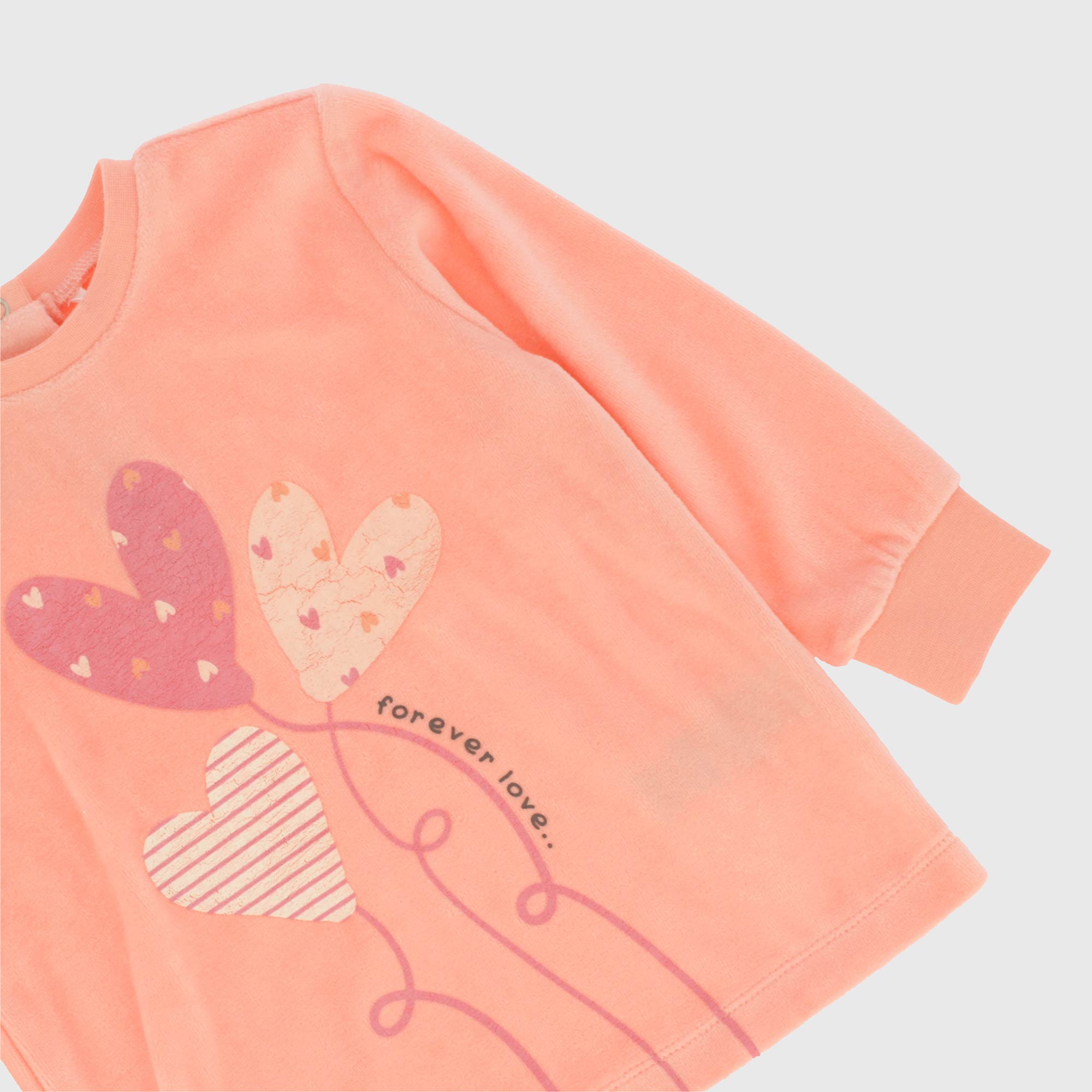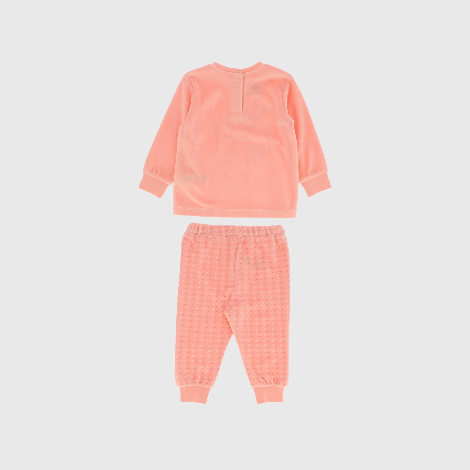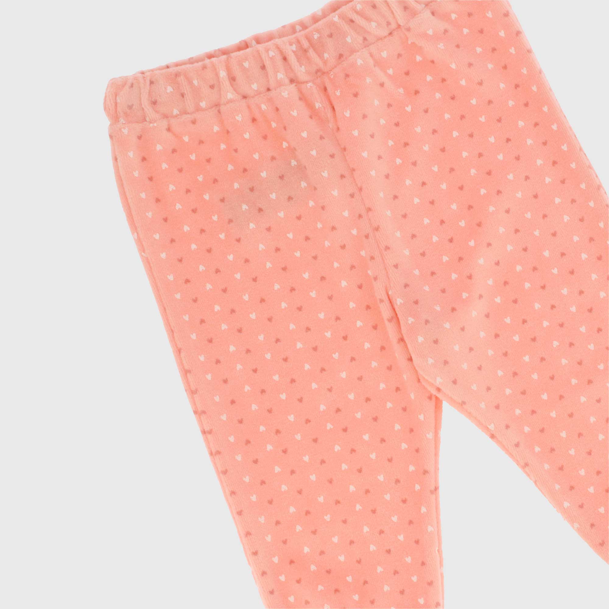 Conjunto pijama de felpilla. Camiseta cuello redondo, mangas largas. Cierre con botones en la parte trasera. Parte delantera estampada. Pantalón con cintura elástica y parte inferior pana. Corazones estampados all over.