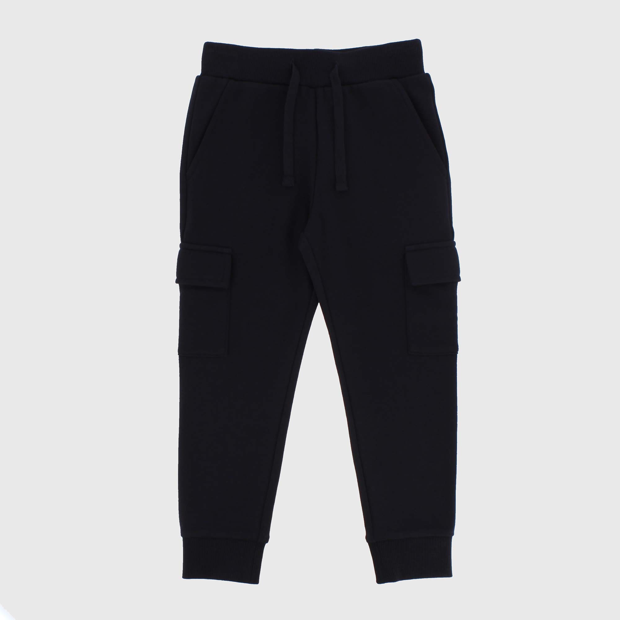 Pantalón jogger de tejido tipo sudadera con cintura elástica y cordones delanteros. Grandes bolsillos laterales. Parte inferior pana.